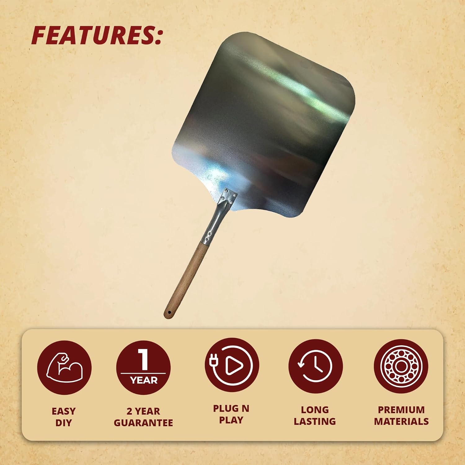 • Fits Up To 14" Pizza - Sturdy Wood Handle