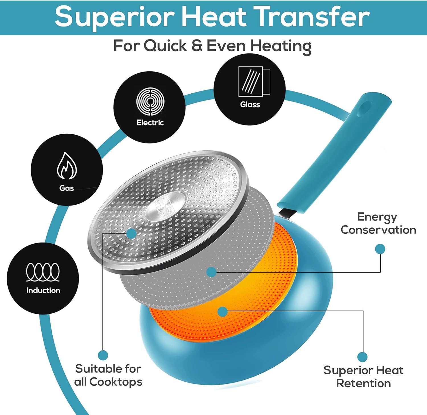 - HARBORING A CULINARY HAVEN β Explore new recipes and savor the delectable aroma, with the impeccably fabricated, nonstick even-heat distributed frying pans, ideal for all types of cook-tops, be it electric or ceramic.