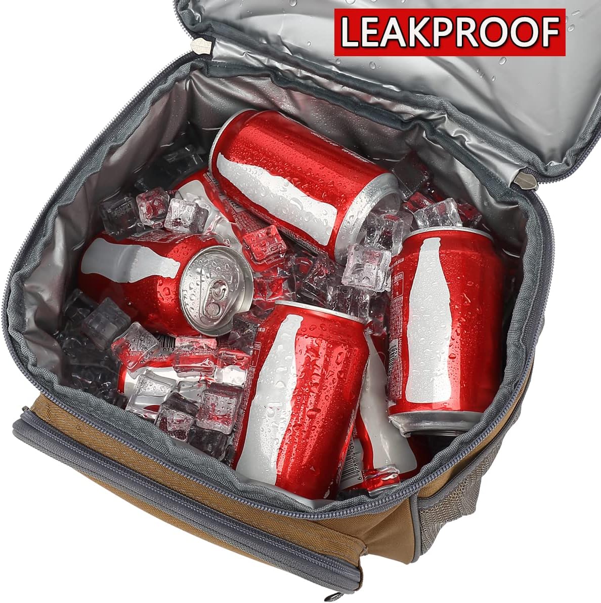 FlowFly Double Layer Cooler Insulated Lunch Bag Adult Lunch Box Large Tote Bag for Men, Women, With Adjustable Strap,Front Pocket and Dual Large Mesh Side Pockets
