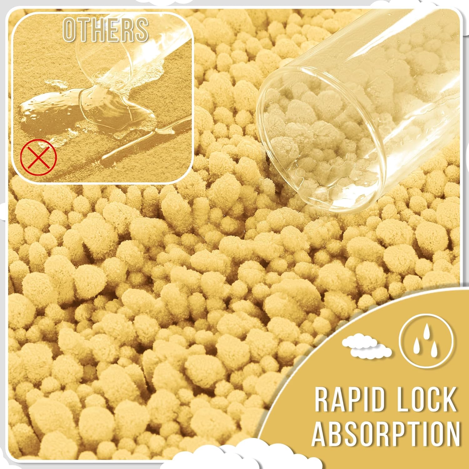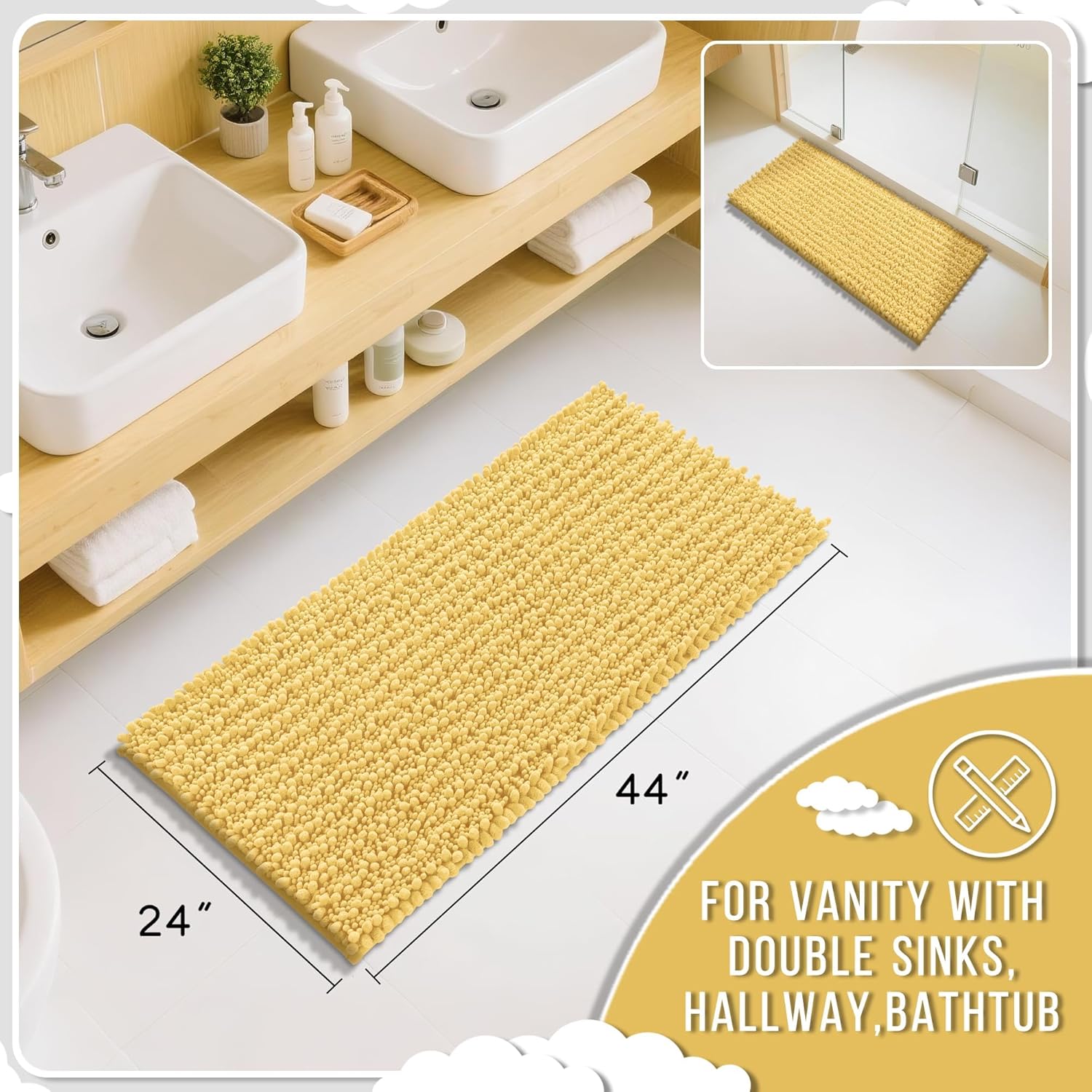 Yimobra Long Bathroom Rugs Non Slip Washable 44x24 Inch - Ultra Soft Absorbent Chenille Bath Mat, Quick Dry Shaggy Floor Carpet for Tub Shower, Yellow Home Decor Accessories