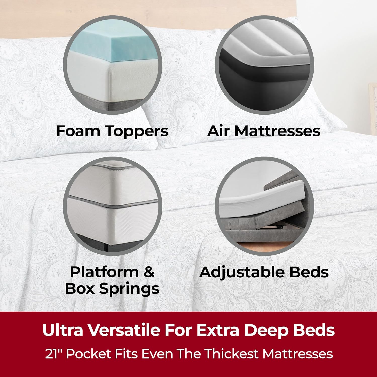 - Perfect Fit & Certified Safe - Deep pockets fit mattresses up to 21" deep, making them ideal for memory foam toppers, air mattresses, and more. A sewn-in elastic band ensures a snug, secure fit. OEKO-TEX(R) STANDARD 100 certified (22.HUS.40891, Hohenstein), tested for over 1,000 harmful substances for your peace of mind.