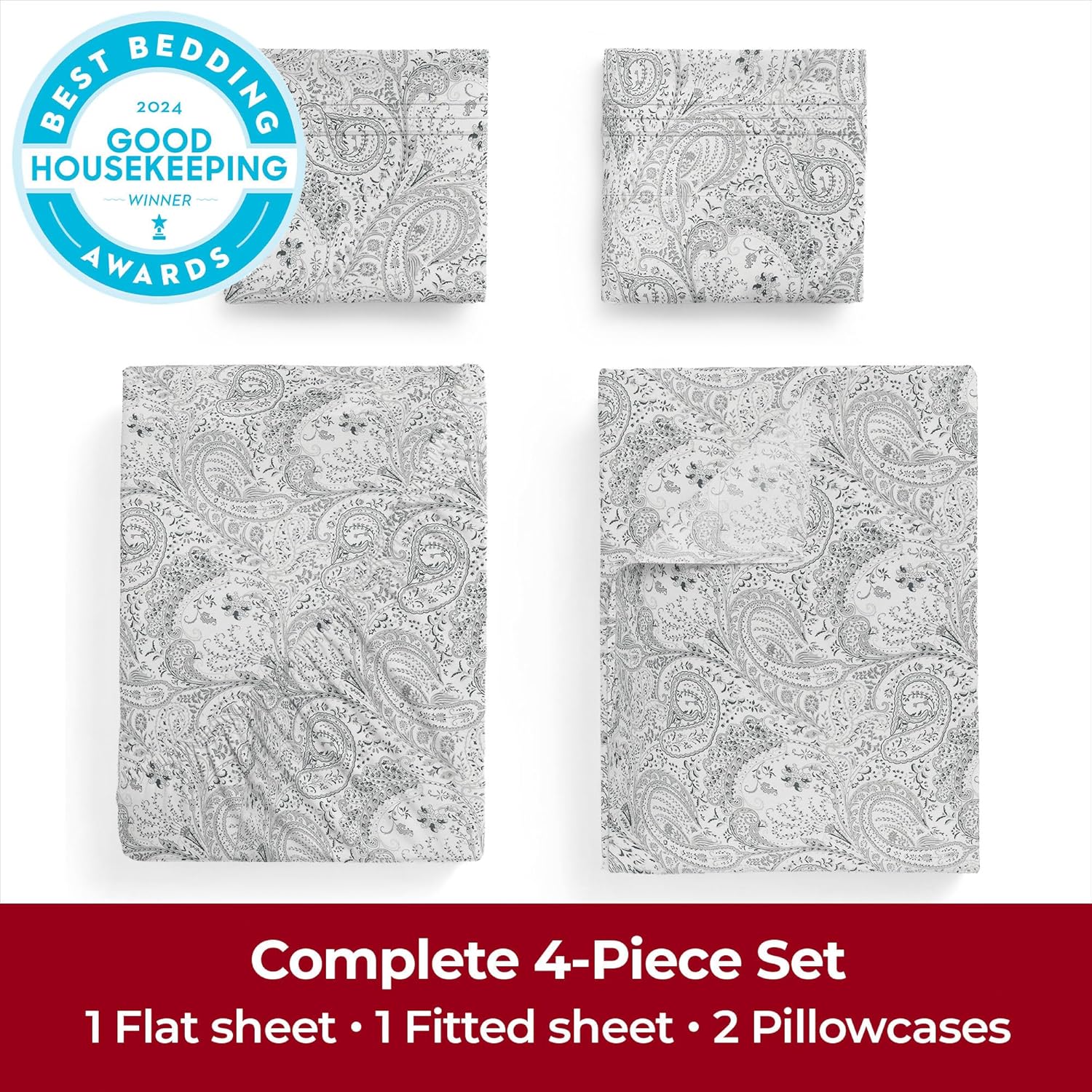 Mellanni Extra Deep Full Sheets - 4 PC Iconic Collection Bedding - Hotel Luxury, Ultra Soft, Cooling Bed Sheets - Wrinkle, Fade, Stain Resistant (Full, Paisley Gray)