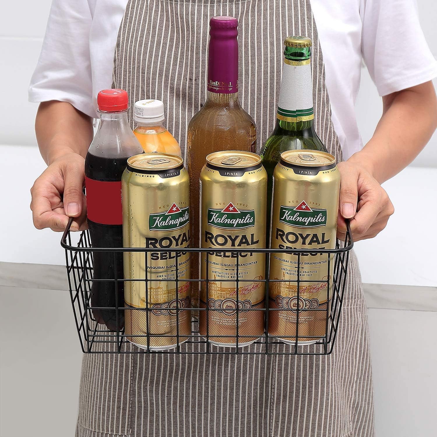 LeleCAT Black Wire Storage Baskets, Metal Household Storage Organizer for Kitchen,Pantry, Shelf, Freezer, Bathroom,Black 2 Pack