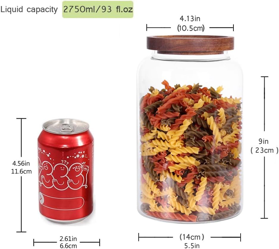 Large Glass Jar with Airtight Lid Set of 2 93 FL OZ(2750ml) glass canister set, Glass Food Containers Wooden Lid Suit for Kitchen Pantry for Flour, Tea, Coffee Beans, Sugar, Cookies(8.8 inch high)