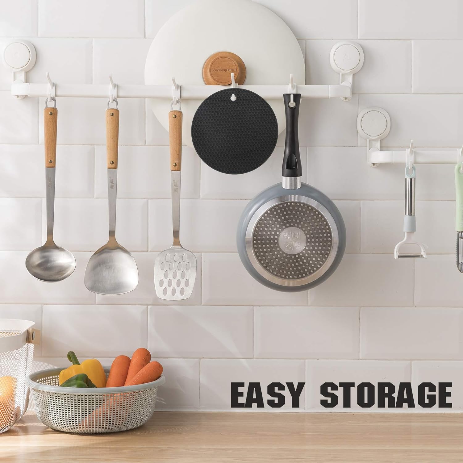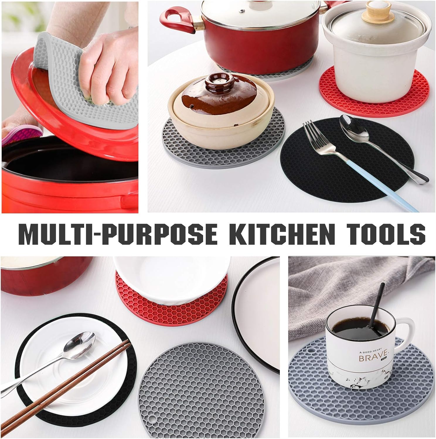 - MULTI-PURPOSE KITCHEN TOOLS: Each trivet has a corner hole for convenient hanging storage and can be used as a coaster, drying mat, jar opener gripper pad, spoon holder, garlic peeler, and potholder mats.