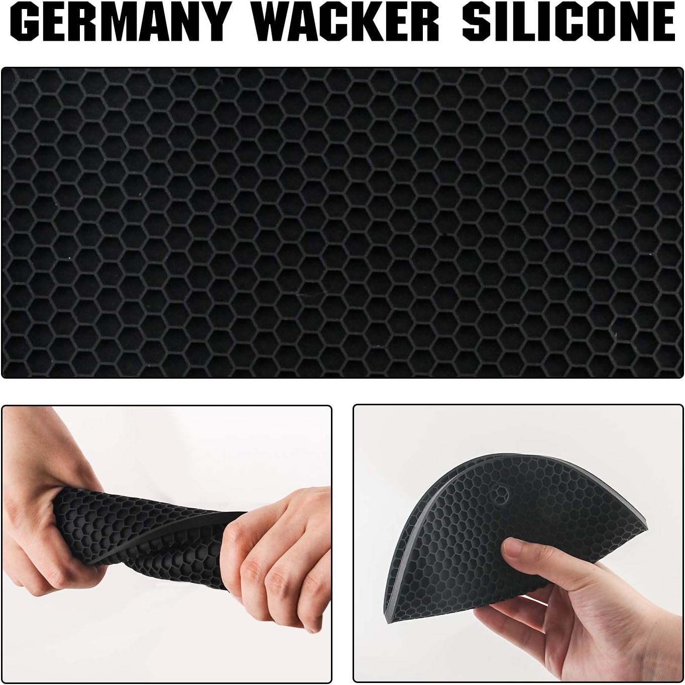 - FLEXIBLE AND DURABLE SILICONE TRIVETS: Our pot holder sets are thicker than traditional sets to provide long-lasting durability and better protection for your countertops while maintaining their flexibility.