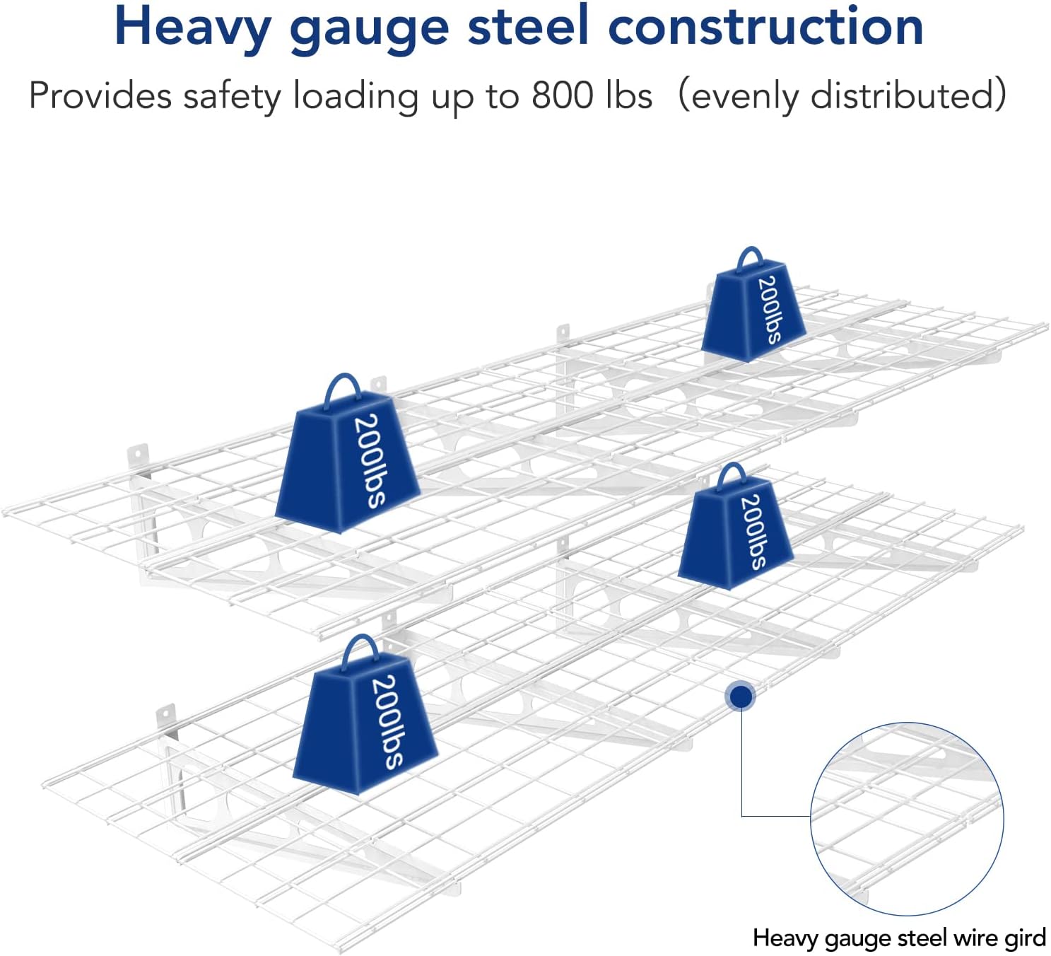 FLEXIMOUNTS 2-Pack 2x6ft Garage Shelving with Hooks 24-inch-by-72-inch Wall Shelf Garage Storage Rack Floating Shelves, White