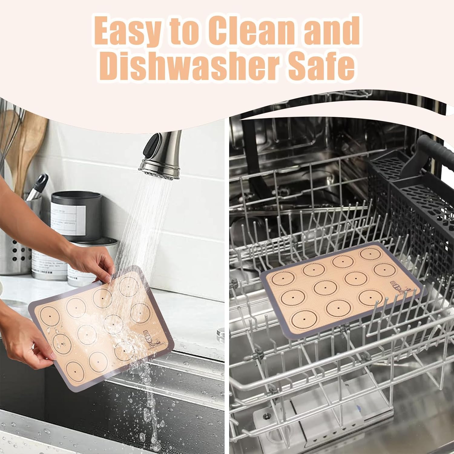 - Non Stick and Easy to Clean: These silicon mats are made from food grade liquid silicone with fiber glass, so you will enjoy the non-stick baking mat if you buy them now. No more scrubbing! Even burnt sugar and fat falls off on its on. Just rinse the washable and reusable mat in warm soapy water to clean it and dishwasher safe.