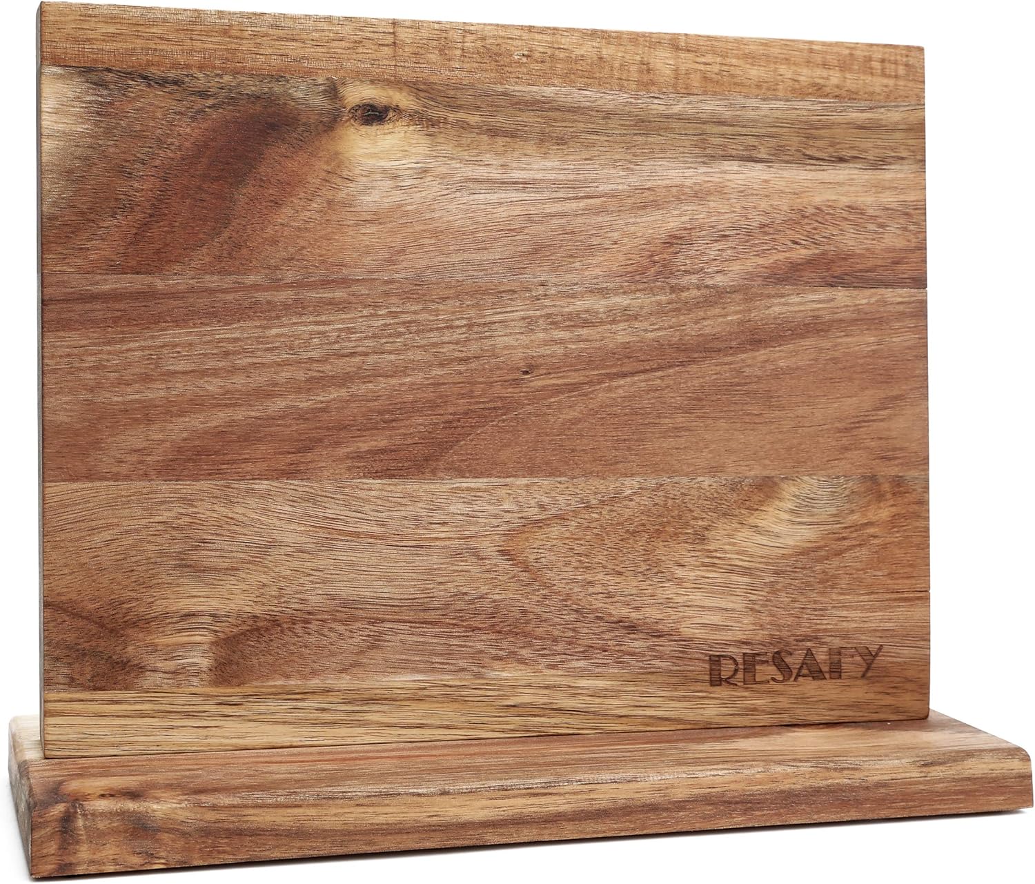 Resafy Large Magnetic Knife Holder,Acacia Wooden Magnetic Knife Block 12.5X10 Inches,Rack Magnetic Universal Stands with Strong Enhanced Magnets Strip Kitchen Storage Cutlery Organizer Without Knifves