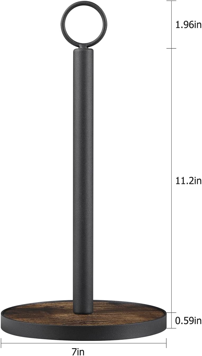 - Weighted Wooden Base - Ultra-stability of the paper towel holder stand is guaranteed thanks to its heavy-duty wood base, which prevents it from tipping over whenever tearing off a sheet of paper towel.