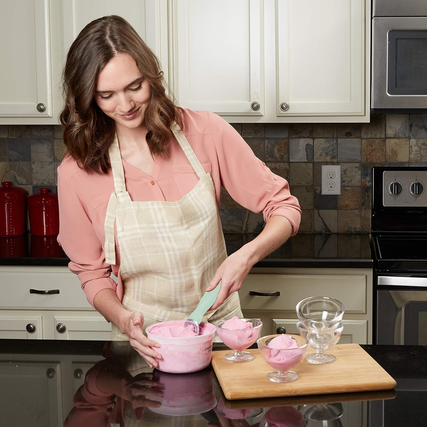- Plows Through Ice Cream Like It's Butter - Glides smoothly and easily through hard-packed frozen sweets. It will seem like ice cream flows right into the scoop and drops into your bowl or cone with little to no effort.