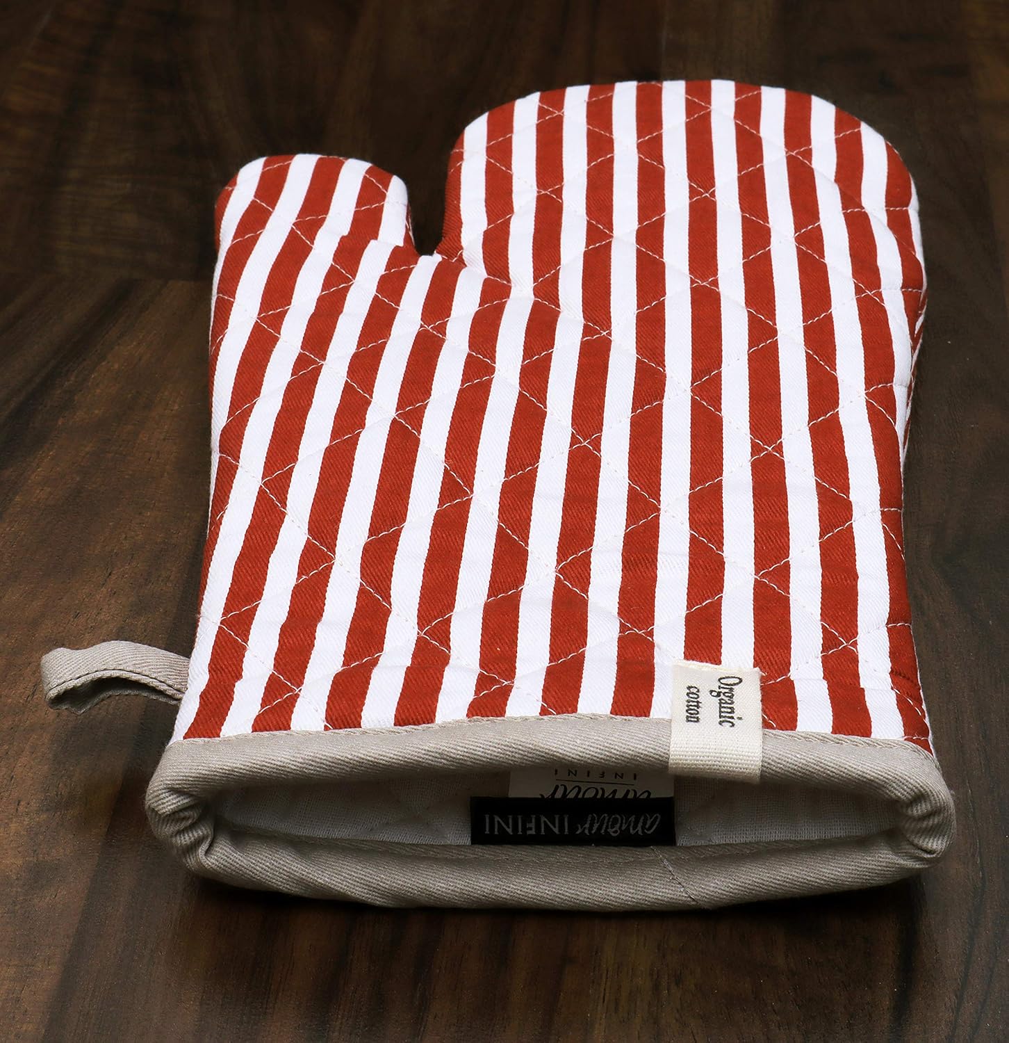 AMOUR INFINI Cotton Oven Mitts Set of 1 with Hanging Loop Non-Slip, Heat Resistant, Reusable Oven Mitt for Baking Cooking Kitchen Easter Oven Gloves (Rust)