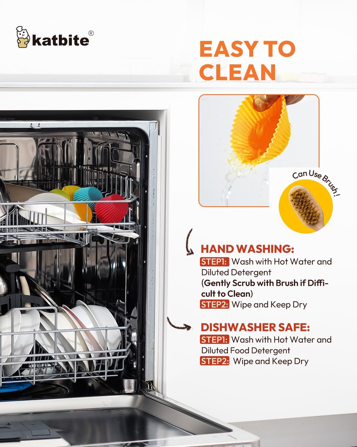 - PREMIUM QUALITY & OVEN SAFE:High temperature resistance silicone cupcake molds are safe for use in the oven, fridge, freezer, microwave and dishwasher with practicality and durability. Just enjoy baking time with your family and friends at anytime.