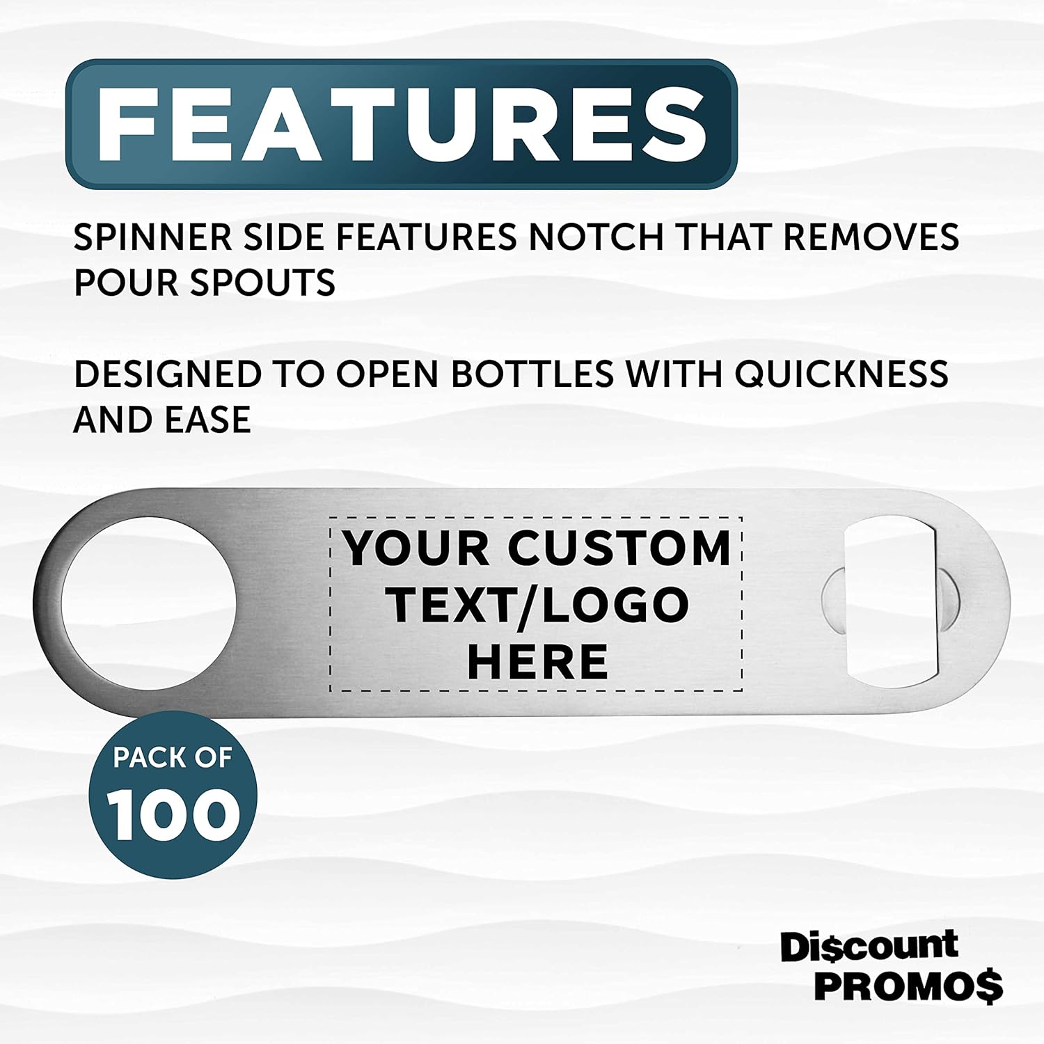 Custom Stainless Steel Beer Bottle Openers Set of 100, Personalized Bulk Pack - Bartender Kit, Bar Accessories, Perfect for Parties, Indoor & Outdoor Events - Silver