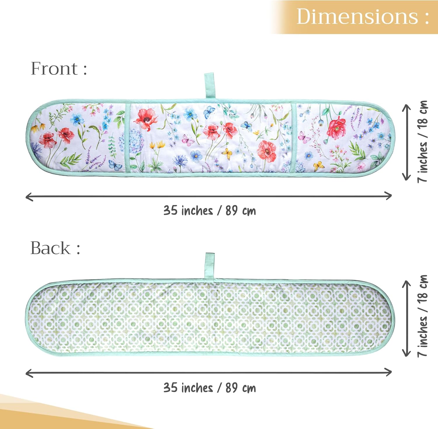 - Package includes: Includes 1 double oven mitt sized 7"x35". Perfect for handling hot cookware safely while adding a touch of European elegance to your kitchen. Designed in Europe and made in India with care