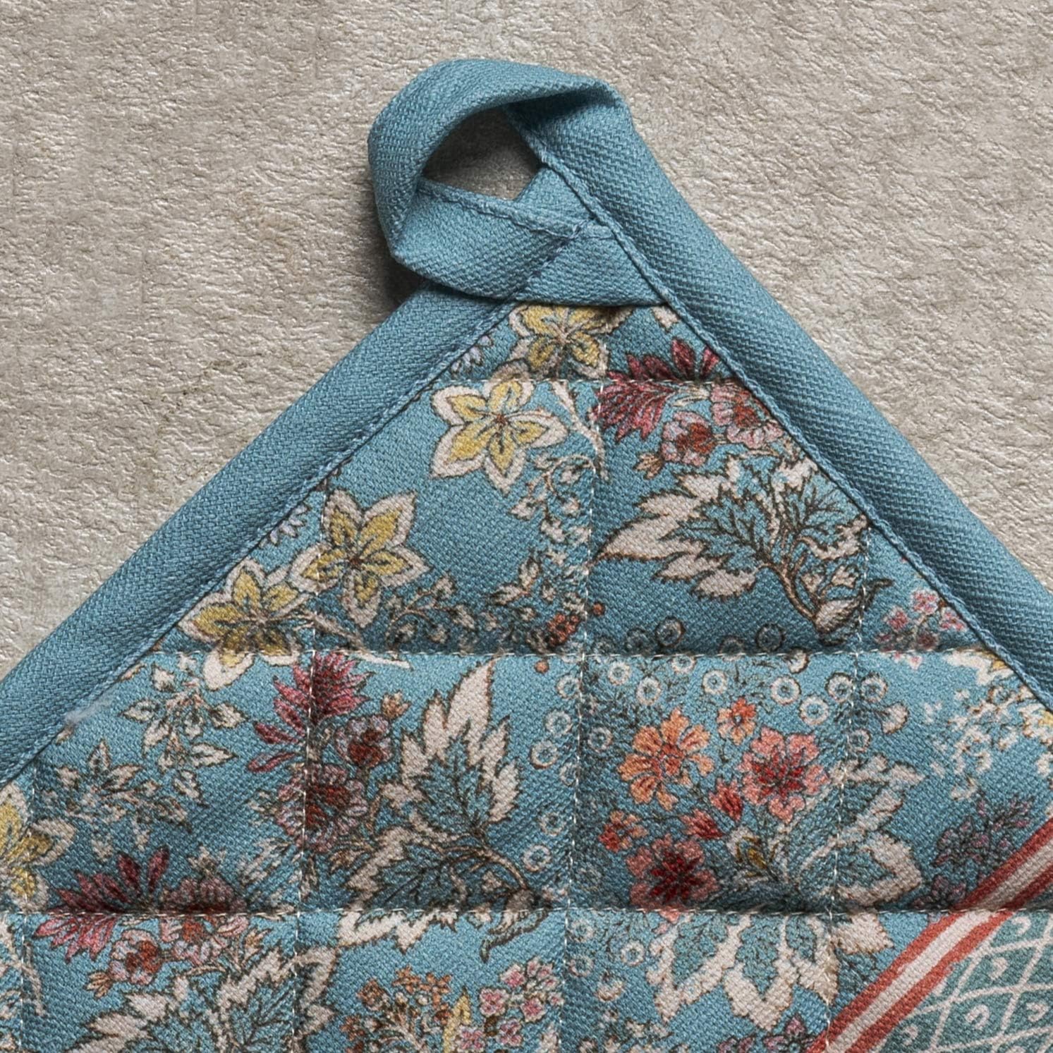 - Package includes: 1 pot holder measures 8"x8". Ideal as a hot pad for dishes, coffee pots, cast iron pans, or cookware. Designed in Europe and Made in India, it blends style, function, and comfort into a daily kitchen essential