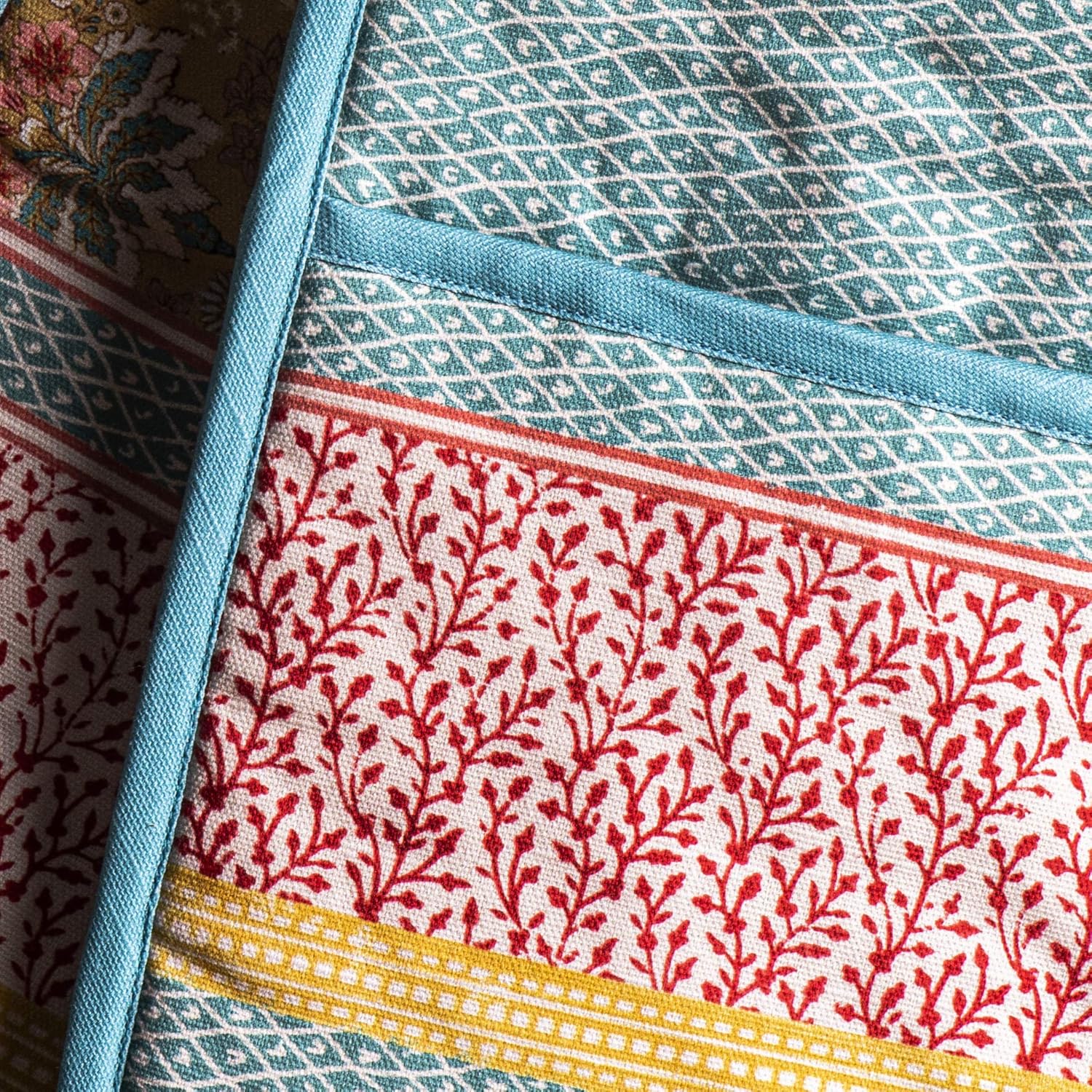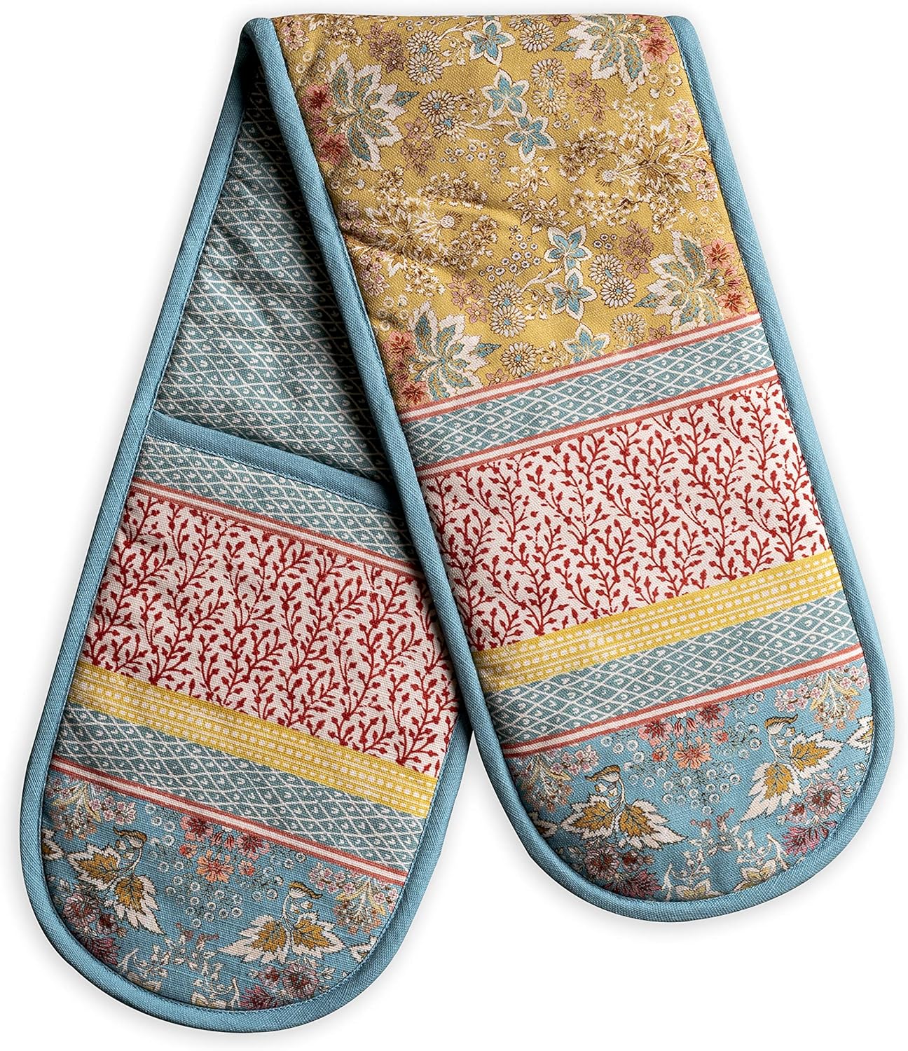 - Package includes: Includes 1 double oven mitt sized 7"x35". Perfect for handling hot cookware safely while adding a touch of European elegance to your kitchen. Designed in Europe and made in India with care