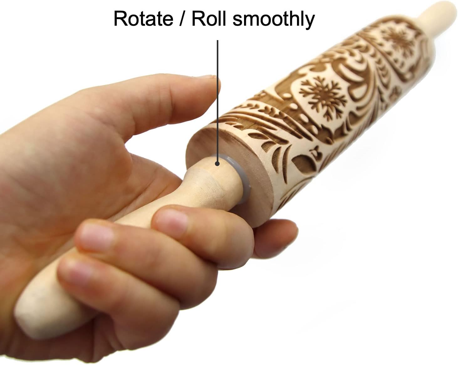 - 【Beautiful Embossed rolling pins】Embossed rolling pins made from durable and moisture-resistant natural wood. Our christmas rolling pins are engraved with classical flower vine pattern and sanded.