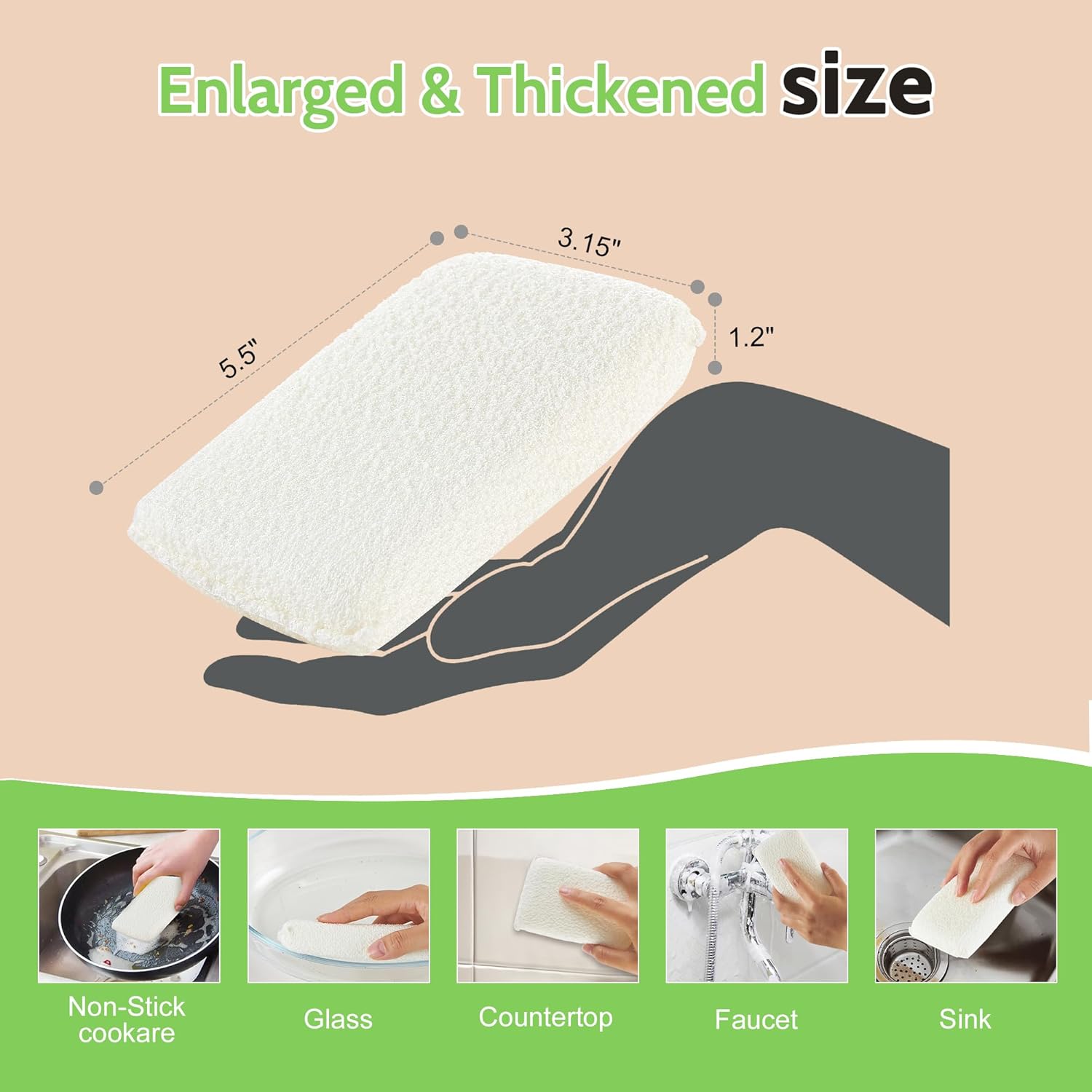 - All-Purpose Non Scratch Sponges: With versatile usability, the organic cotton cleaning sponge is suitable for daily use. These scrub sponges work well on all surfaces, effectively removing dirt, grime, stuck on stains and messes