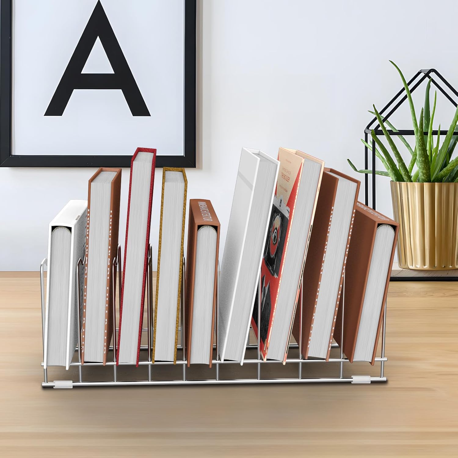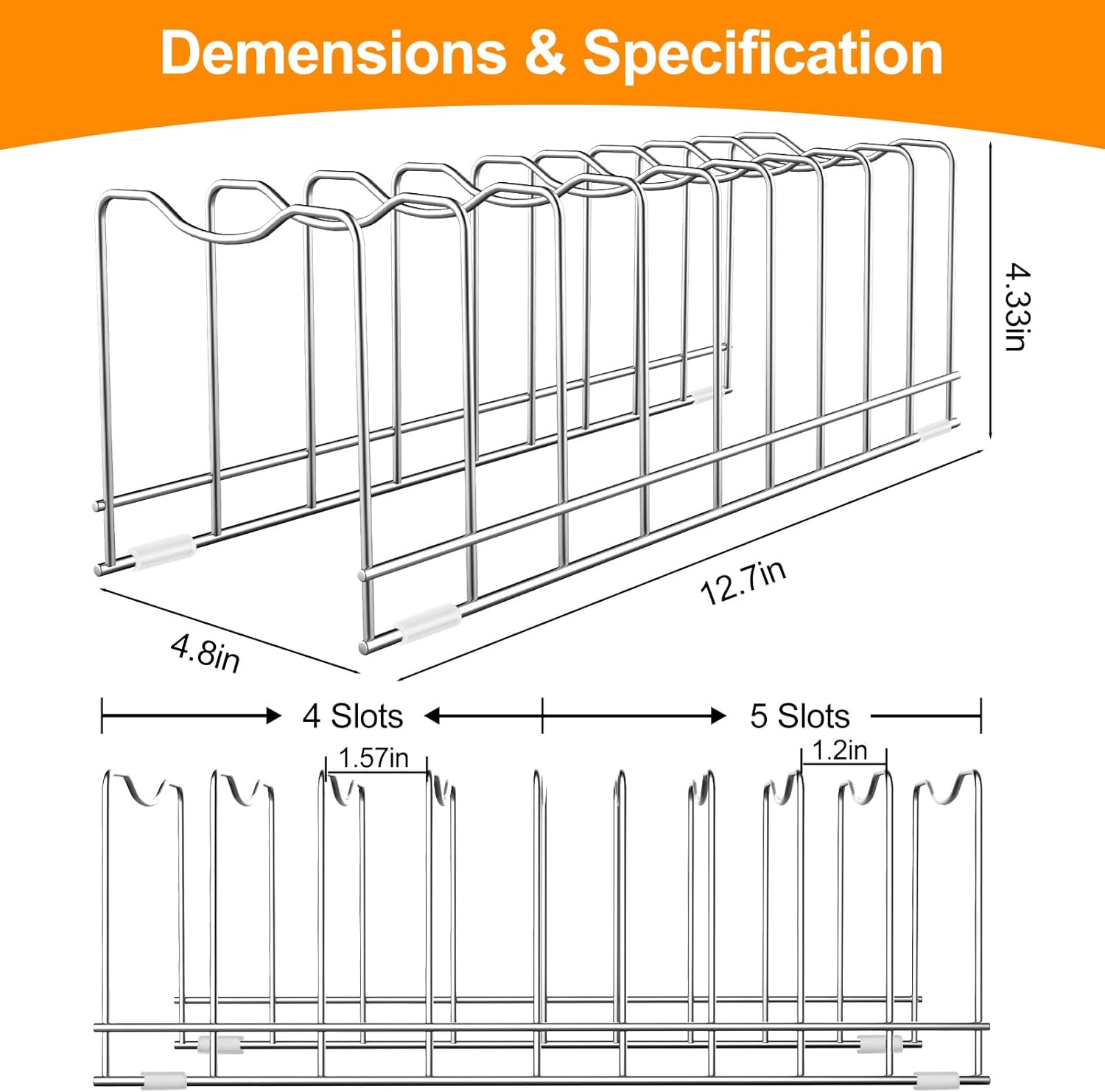 - â€ăMultifunctional ProductsăïŒIt perfect for pans, pot lids, dishes, cookie sheet, bakeware, cutting boards, pot lid, griddles, books, discs and files. And the rungs separate the items to make it easy to grab the skillet or lid, keep your kitchen cabinets and countertop orderly.