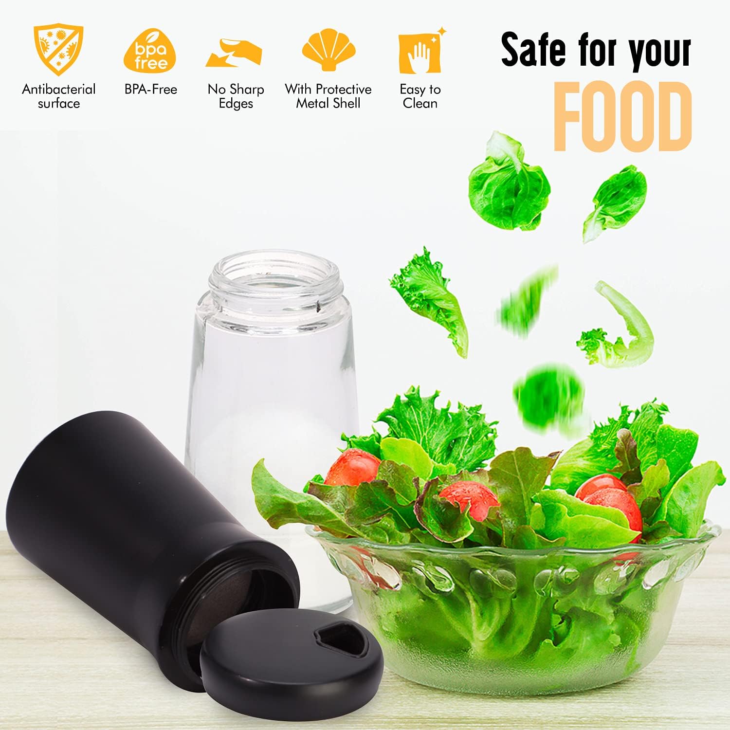 - SET OF 2 SHAKERS: This salt-and-pepper set has two bottles for a classic salt and pepper set. Fill with salt and pepper and get more shakers for your favorite spices. You can also fill with kosher salt and Himalayan salt.