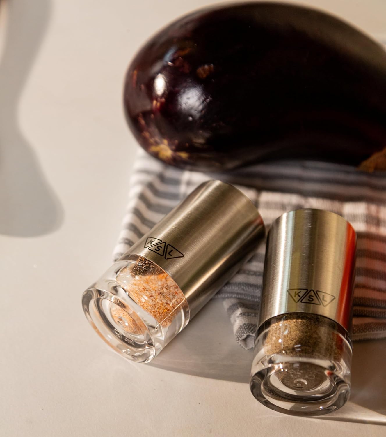 KSL Original Glass Salt and Pepper Shakers Set - Stainless Steel Salt Shaker and Pepper Shaker - Salt and Pepper Shaker Set for Salts and Pepper
