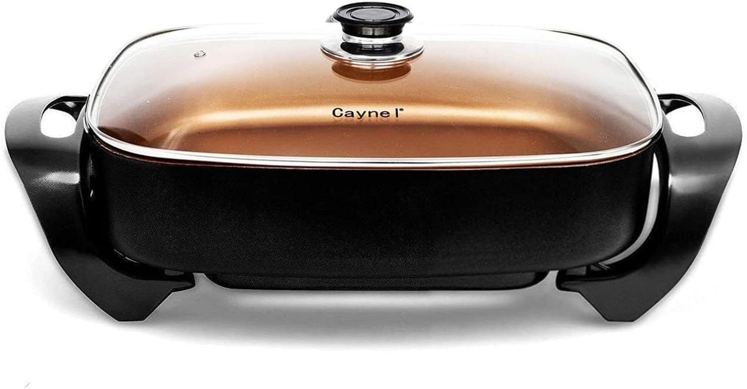 Caynel Professional Non-stick Copper Electric Skillet Jumbo, Deep Dish with Tempered Glass Vented Lid, Upgrade Thermostat, 16”x 12”x 3.15”- 8 quart