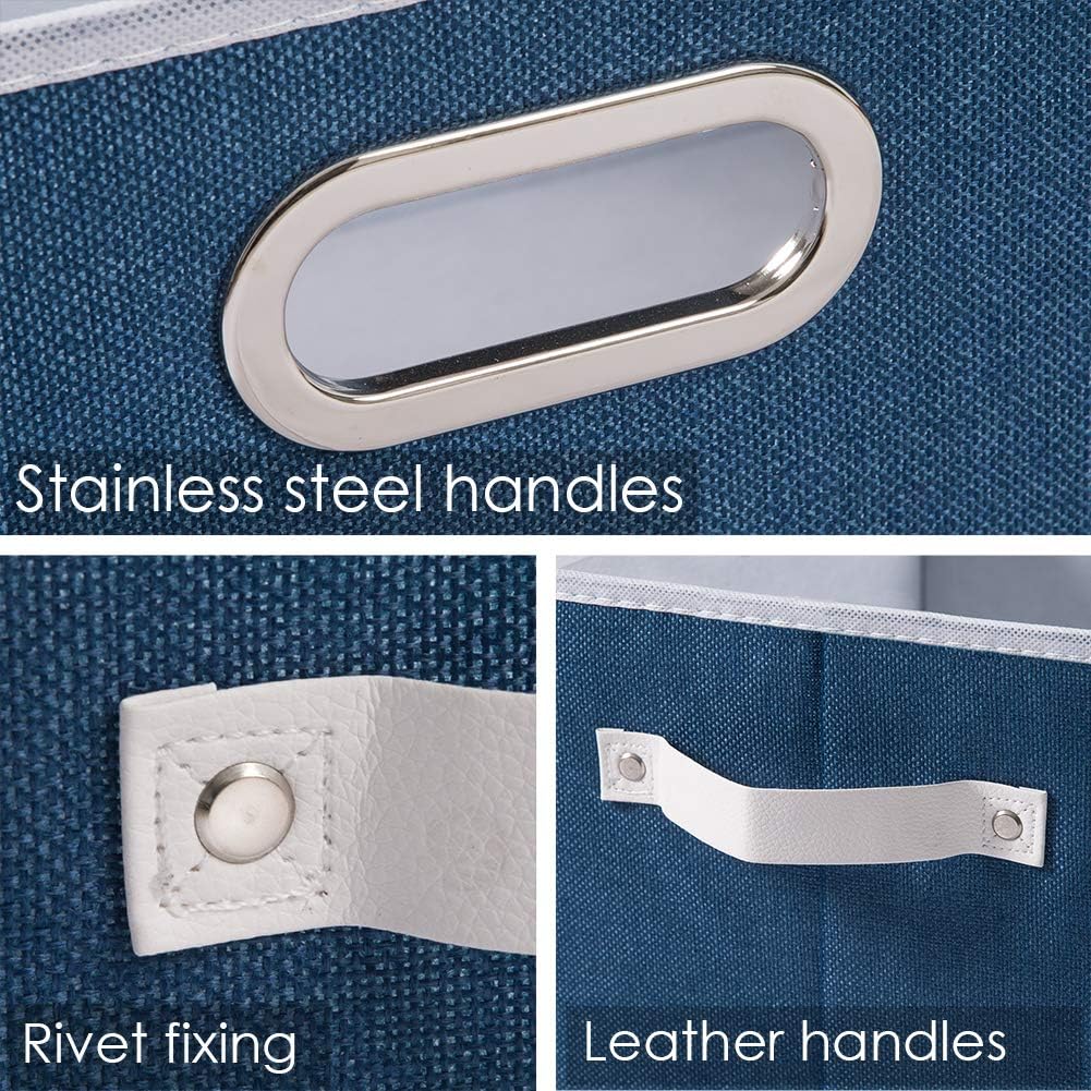 - 【Fashionable Bins】Designed to match interior decor and style in any room in the home or office. Enjoy the relaxing ambiance of the soft royal blue and natural white neutral color scheme.