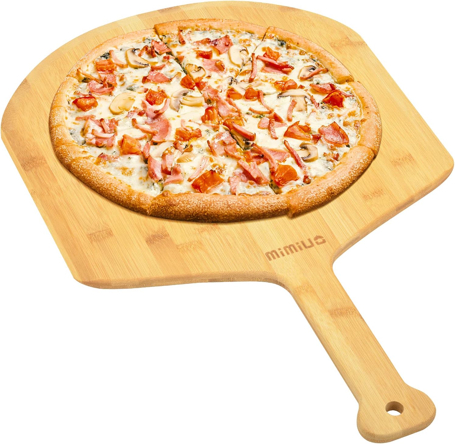 Mimiuo Natural Bamboo Pizza Peel - 15 Inch Wooden Pizza Spatula for Baking Homemade Pizza Bread and Cutting Fruit Vegs