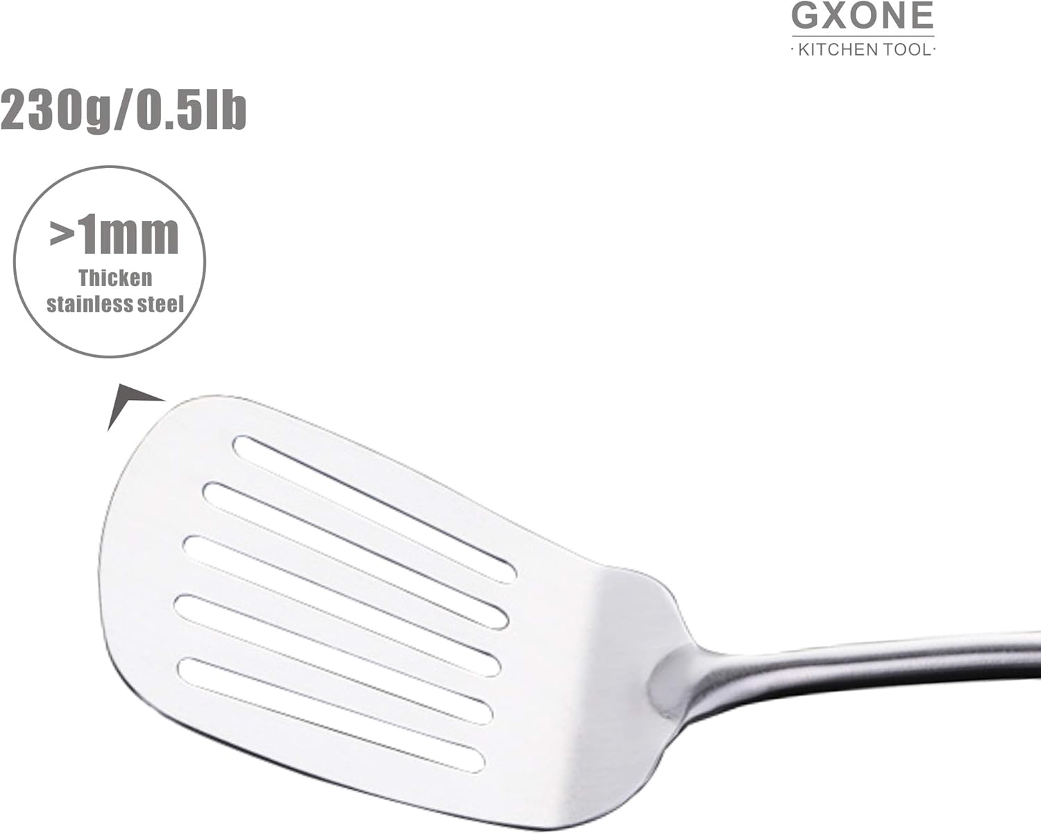 - 【REASONABLE SIZE】15.7-inch in length,3.1-inch in width,0.41lb in weight mean our stainless steel spatula is very sturdy in the kitchen.