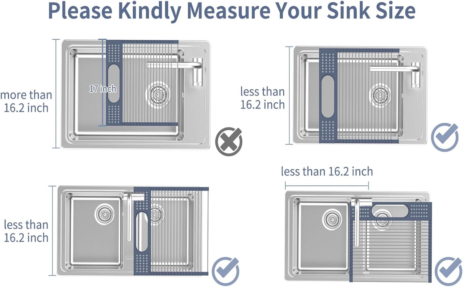 - ăNew Design Dimension With Extra Utensil BasketsăïŒ The Fully expanded size of the sink dish drying rack is 17" x 15". Please kindly measure your sink size firstly before purchasing this roll up sink drying rack! home organization must haves 2024ïŒGood for your kitchen sink accessories