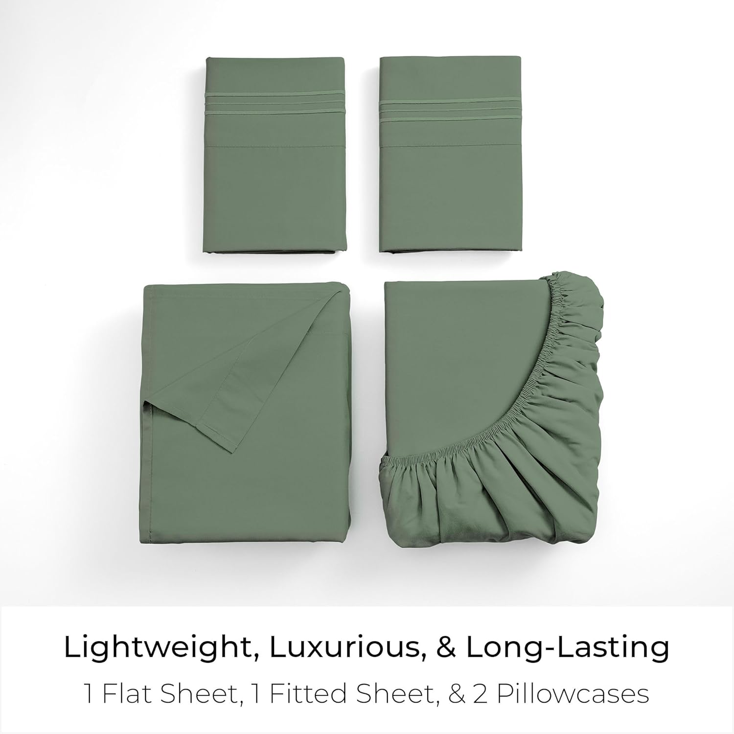 Mellanni California King Sheets Set - 4 PC Iconic Collection Bedding - Hotel Luxury, Extra Soft, Cooling Bed Sheets - Wrinkle, Fade, Stain Resistant (Cal King, Sage)
