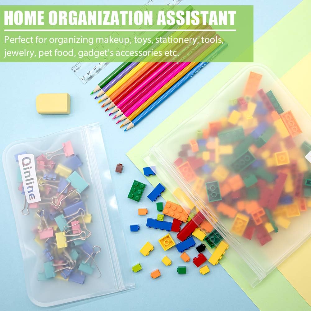 - REUSABLE FOOD GRADE MATERIAL & EASY TO CLEAN: Made of food-grade PEVA material, Qinline reusable storage bags are non-toxic, save our planet and save your money. We recommend HAND WASH, for the dishwasher will damage the double closure of the food storage bags. It is easy to clean with the bottle brush and put the bags on the top of a mug or cup to air dry. Using Qinline reusable non-toxic storage bags to save our planet and save your money