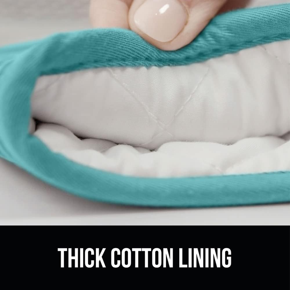 GORILLA GRIP BPA-Free Soft Silicone Oven Mitts and Pot Holders Sets, Heat Resistant Waterproof Cooking Gloves, Thick Cotton Lining, Flexible Gripping for Baking Grilling, Kitchen Trivets, Turquoise
