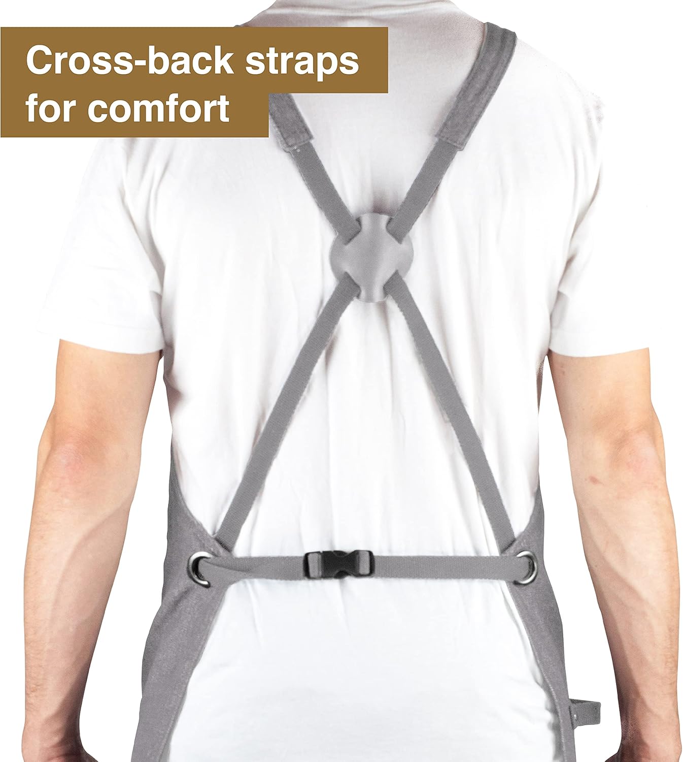 - Multipurpose Protection – Guard yourself against spills in any setting. Your sturdy cooking apron can be worn in kitchens, art studios, garages, and more. Whatever your craft, we’ve got you covered.