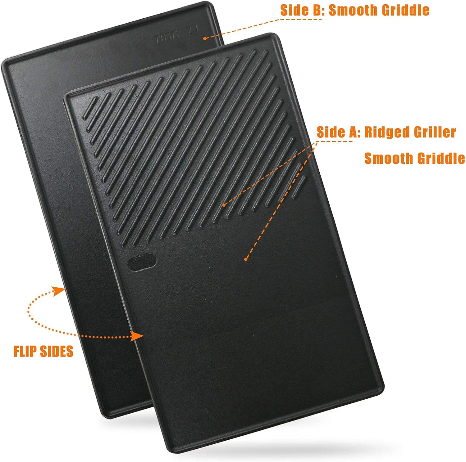 Uniflasy 7637 17.5 Inch Cast Iron Griddle Grates Replacement Part for Weber Spirit E210 E220 S210 S220 with Front Control, Reversible Griddle Plate for Weber Spirit & Spirit II 200 Series