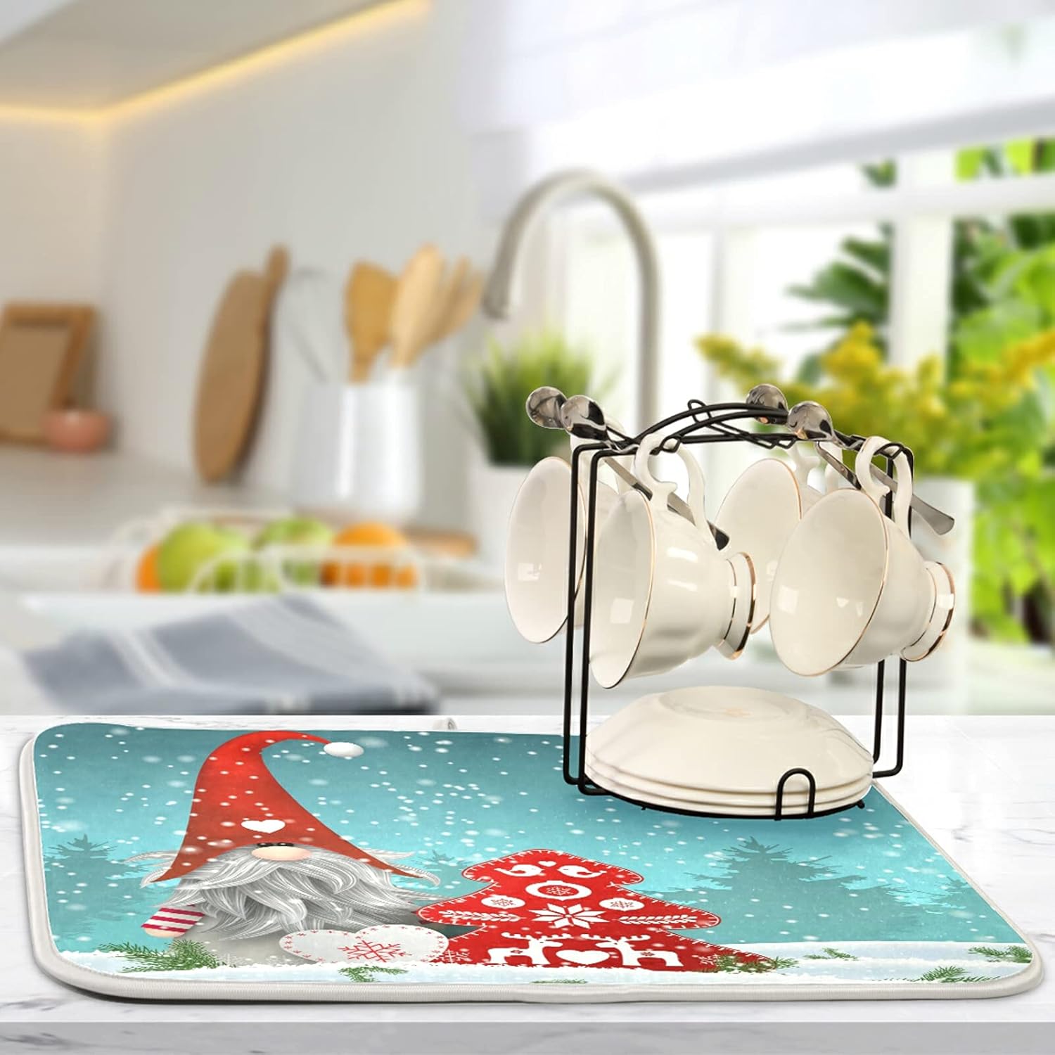 Super Absorbent Dish Drying Mat, Microfiber Fast-Drying Dish Mat, 16" x 18", Kitchen Dish Drying Pad, Watercolor Cute Christmas Gnome…