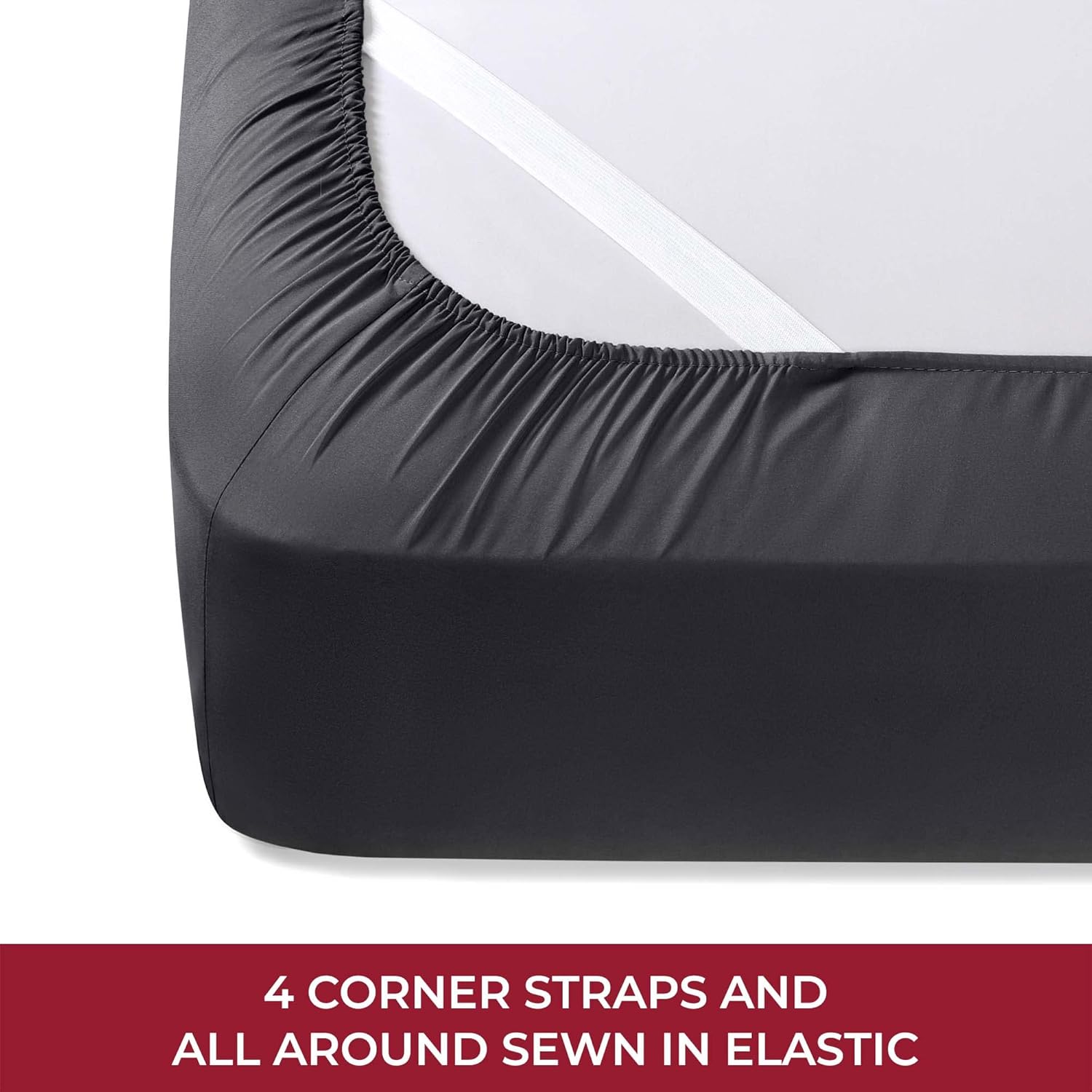 Mellanni RV Short Queen Sheets - 4 PC Iconic Collection Bedding - Hotel Luxury, Extra Soft, Cooling Bed Sheets - Deep Pocket up to 10 inch (RV/Short Queen, Black)