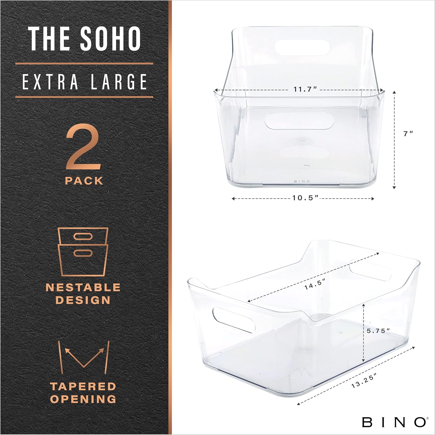 BINO | Plastic Storage Bins, X-Large - 2 Pack, Clear | THE SOHO COLLECTION | Pantry Organizers and Storage Containers Fridge Organizer Bins Kitchen Cabinet Organizer Medicine Cabinet Organizer Bin