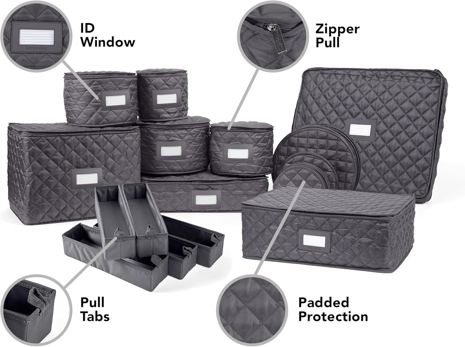 Covermates Keepsakes - Dish Storage Set - Padded Protection - ID Window - Stain Resistant - Machine Washable - China Storage, Slate