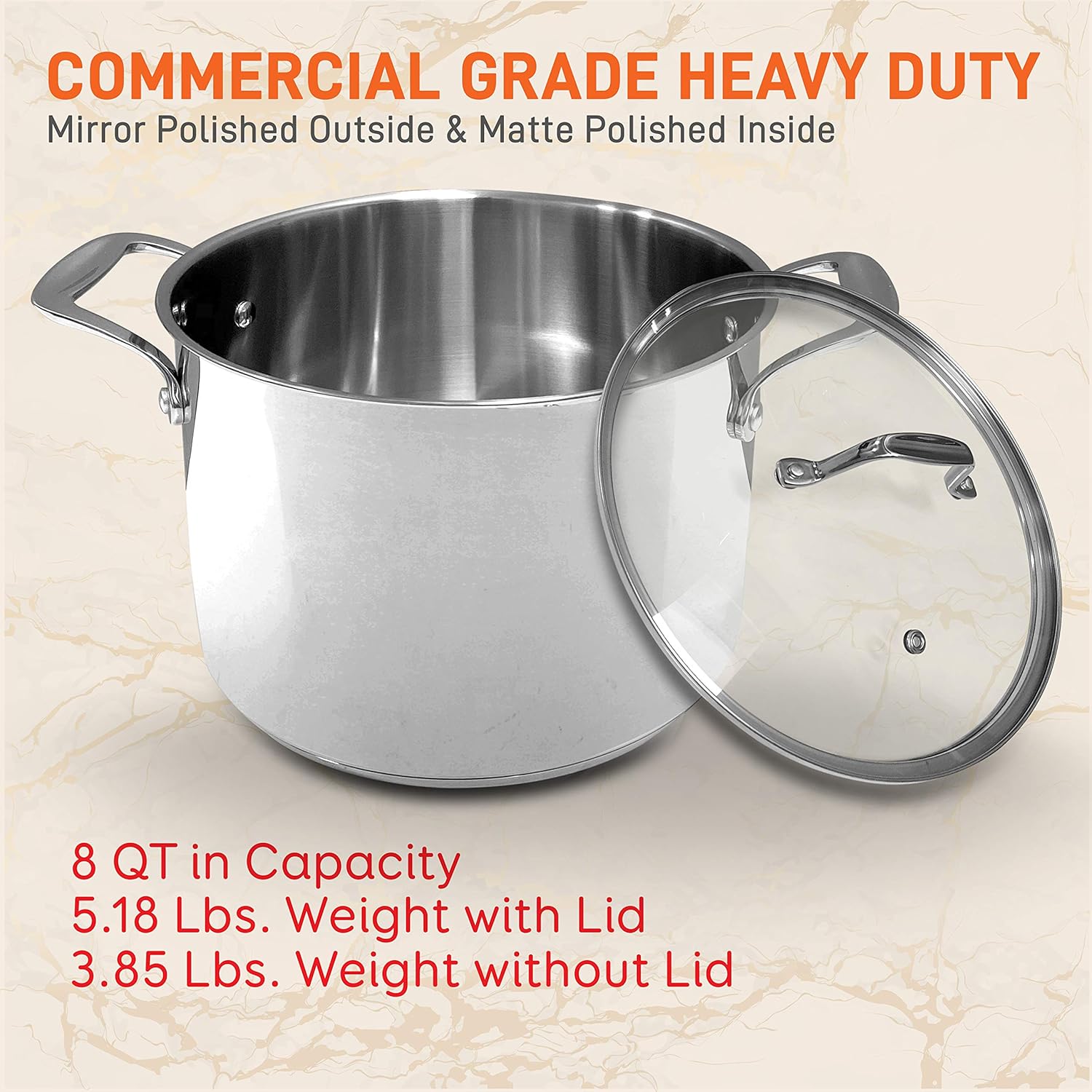 - 8 QUARTS: The NutriChef Stainless Steel Large Cooking Pot features 8-quart capacity weighing 5.18 lbs w/ lid which is the perfect size for boiling eggs, simmering stocks & soups, or making sauces.Great for commercial & home cooking