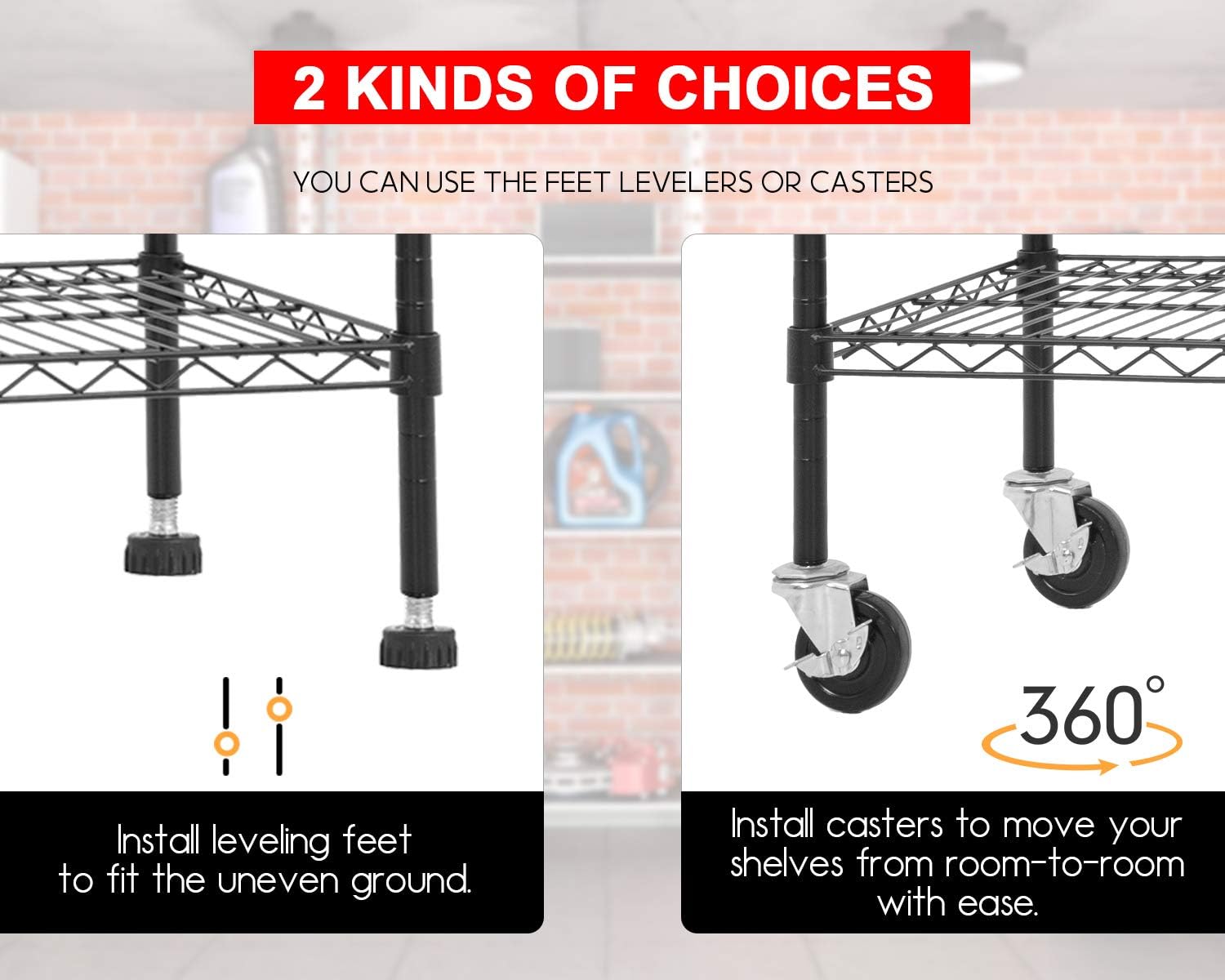 - ✔【Strong Weight Capacity】Without wheels, the weight limit for each shelf is 1000 pounds and the total weight limit for the entire shelf is 6000 pounds.When commercial wheels are mounted, the weight limit for each shelf is 100 pounds and the total weight limit for the entire shelf is 600 pounds.