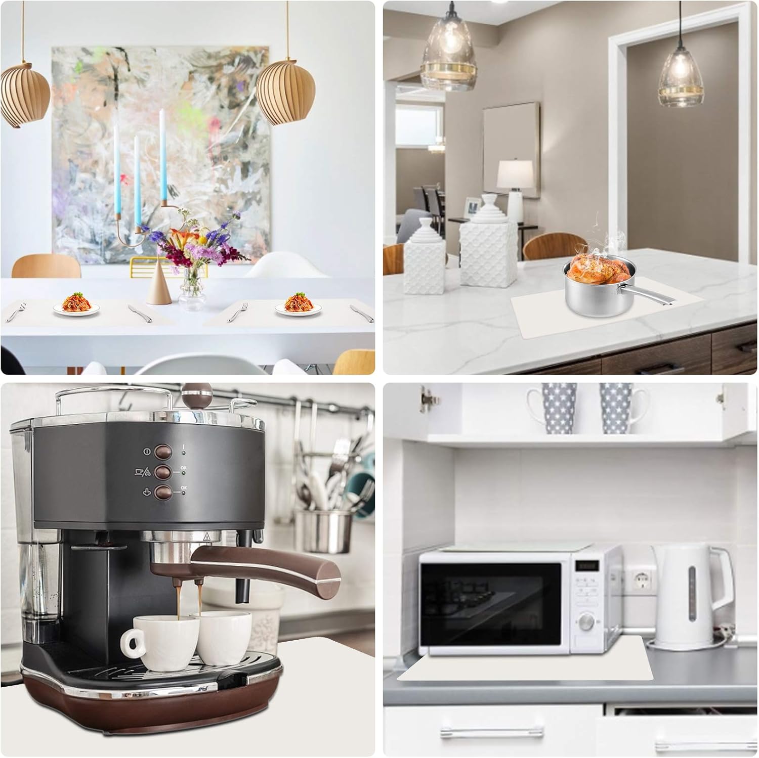 - Countertop Protector : The multipurpose silicone mat can be used as placemats, pot holder, dish mats, tableware, trivet, drains, heat insulated pads to protect the kitchen countertops and other surfaces against spills, scratches, grease, heat, etc.