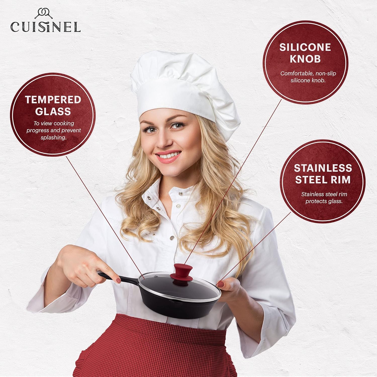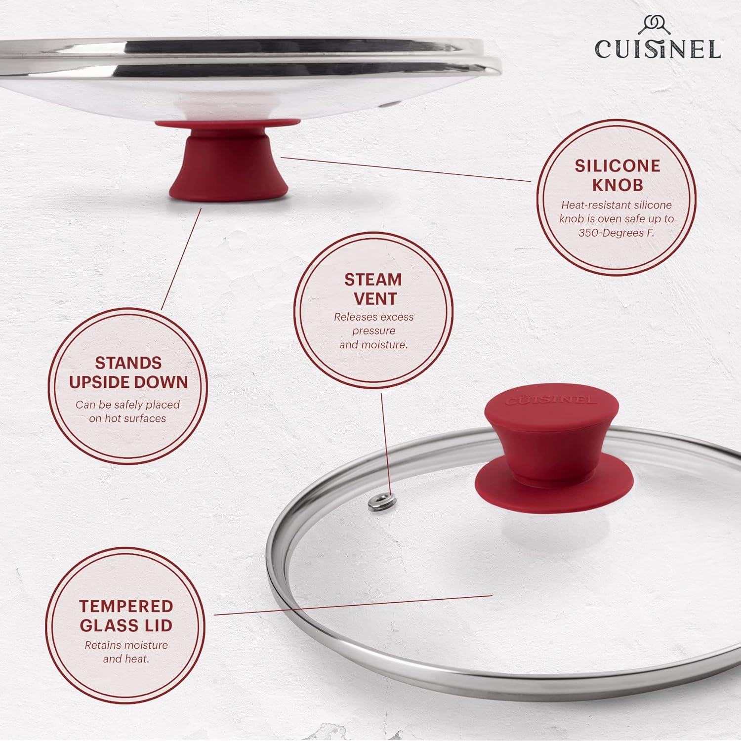 - STEAM VENT HOLE: Cuisinel's professional quality lids β now updated with steam vent holes to prevent liquid from boiling over. Vent holes allow just the right amount of moisture to evaporate easily so your food doesn't saturate in liquid. Vent holes make sure the glass lid doesnβt cloud up β allowing you to easily see cooking progress without removing lid.