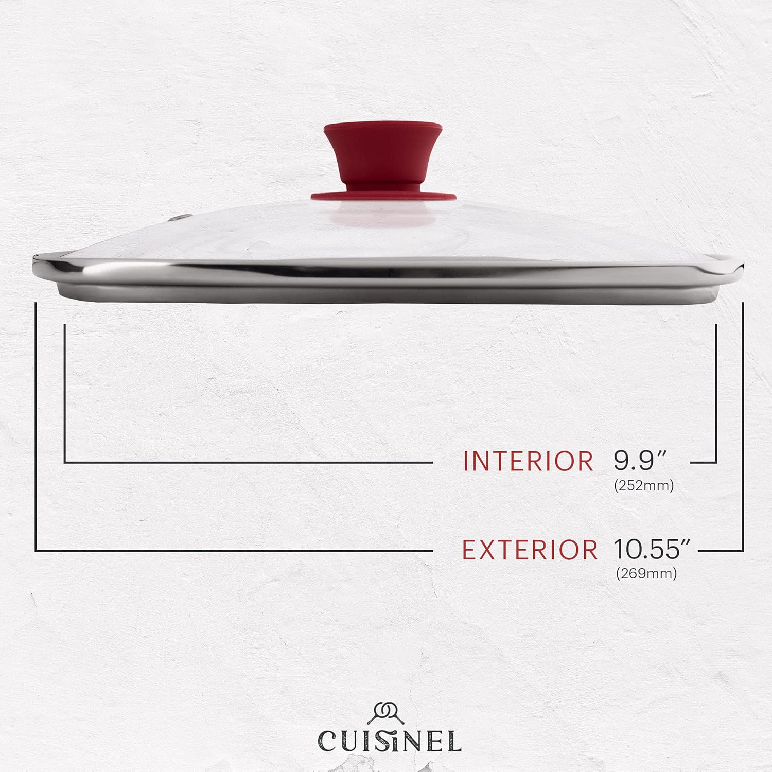 Cuisinel Square Glass Lid for Grill Pans with Steam Vent Hole - 10.5"-inch/26.67cm - Fits Lodge Cast Iron - Fully Assembled Universal Replacement Cover - Tempered and Oven Safe - Reinforced Stainless