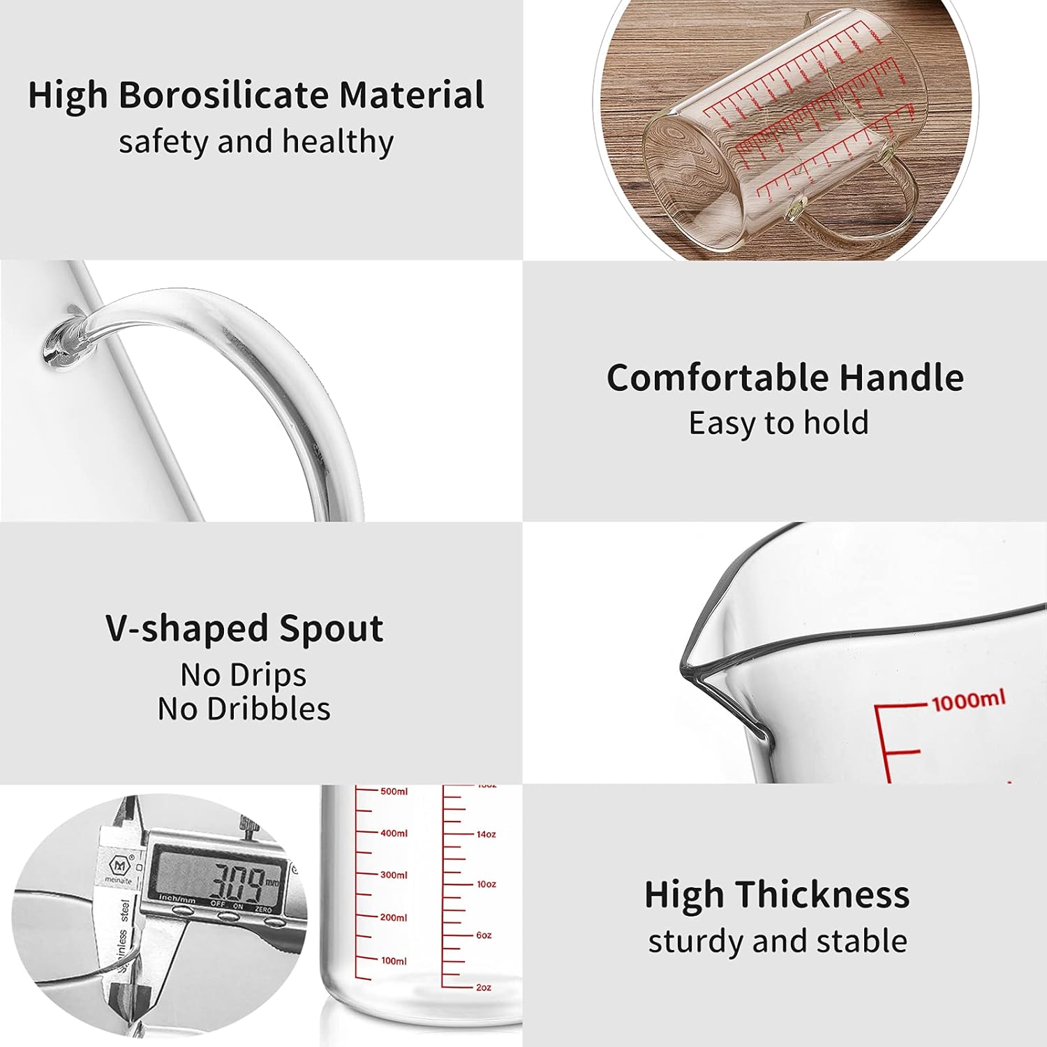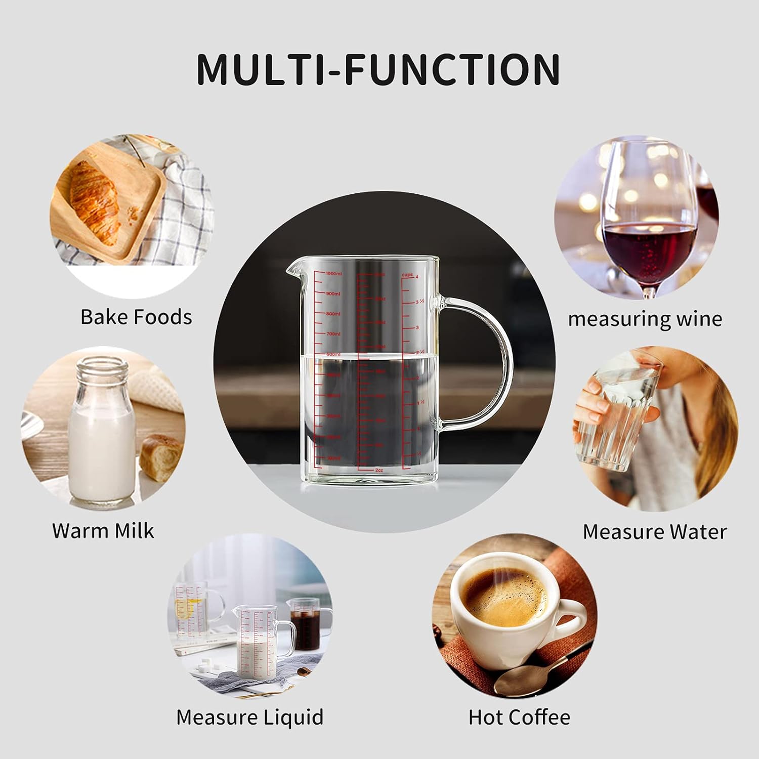 - 【Large Capacity】Experience culinary freedom with our 4 cup glass measuring cup with a large capacity for all your kitchen needs. Whether you're measuring, mixing or pouring, this large measuring cup glass ensures that it will meet any of your culinary needs.