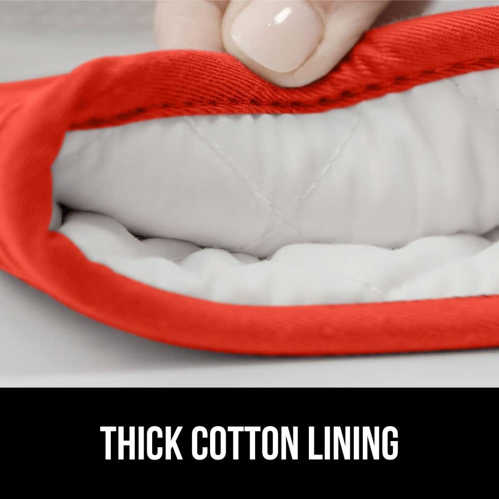 GORILLA GRIP BPA-Free Soft Silicone Oven Mitts, Heat Resistant and Waterproof Cooking Gloves, Thick Cotton Lining, Flexible Gripping for Baking Grilling, Kitchen Potholders Set of 2, 12.5x8.3, Coral