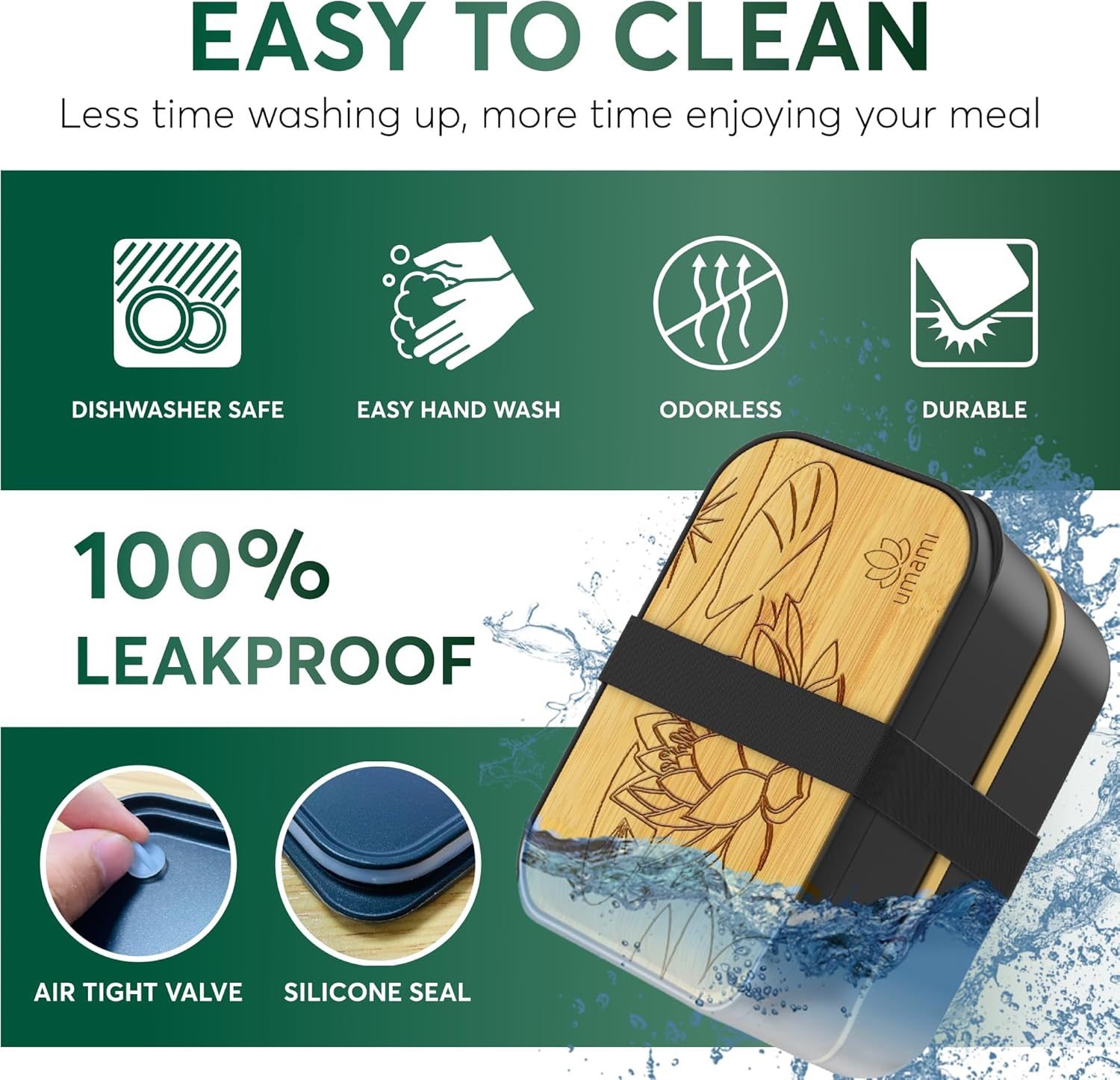 - BEAUTIFUL DESIGN - Feast your eyes on this bento box lunch container for adults with a bamboo design lid, and imagine the tantalizing flavors waiting inside. Elevate your mealtime experience with Umami.