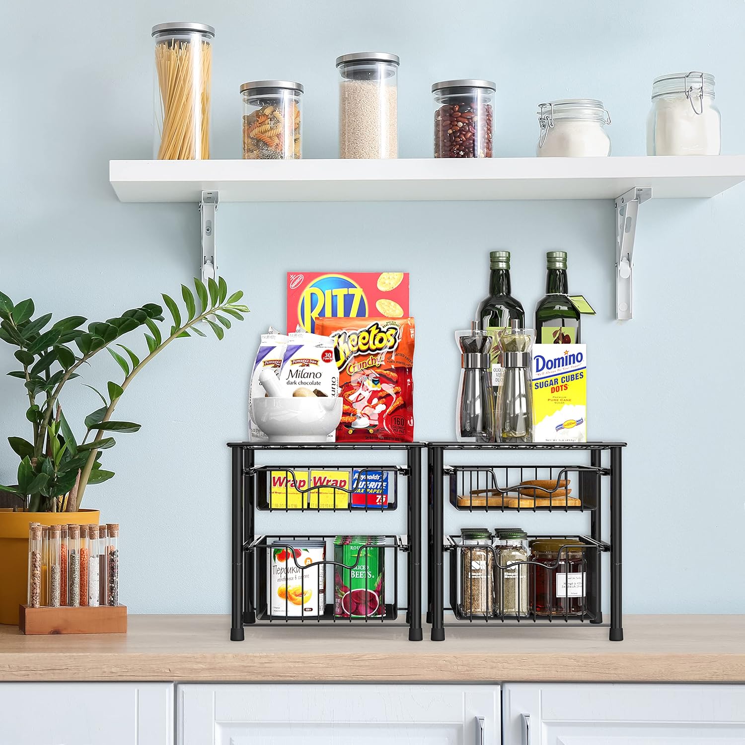 - Sliding basket for easy access in limited space and stackable design (Buy two sets and stack them together)