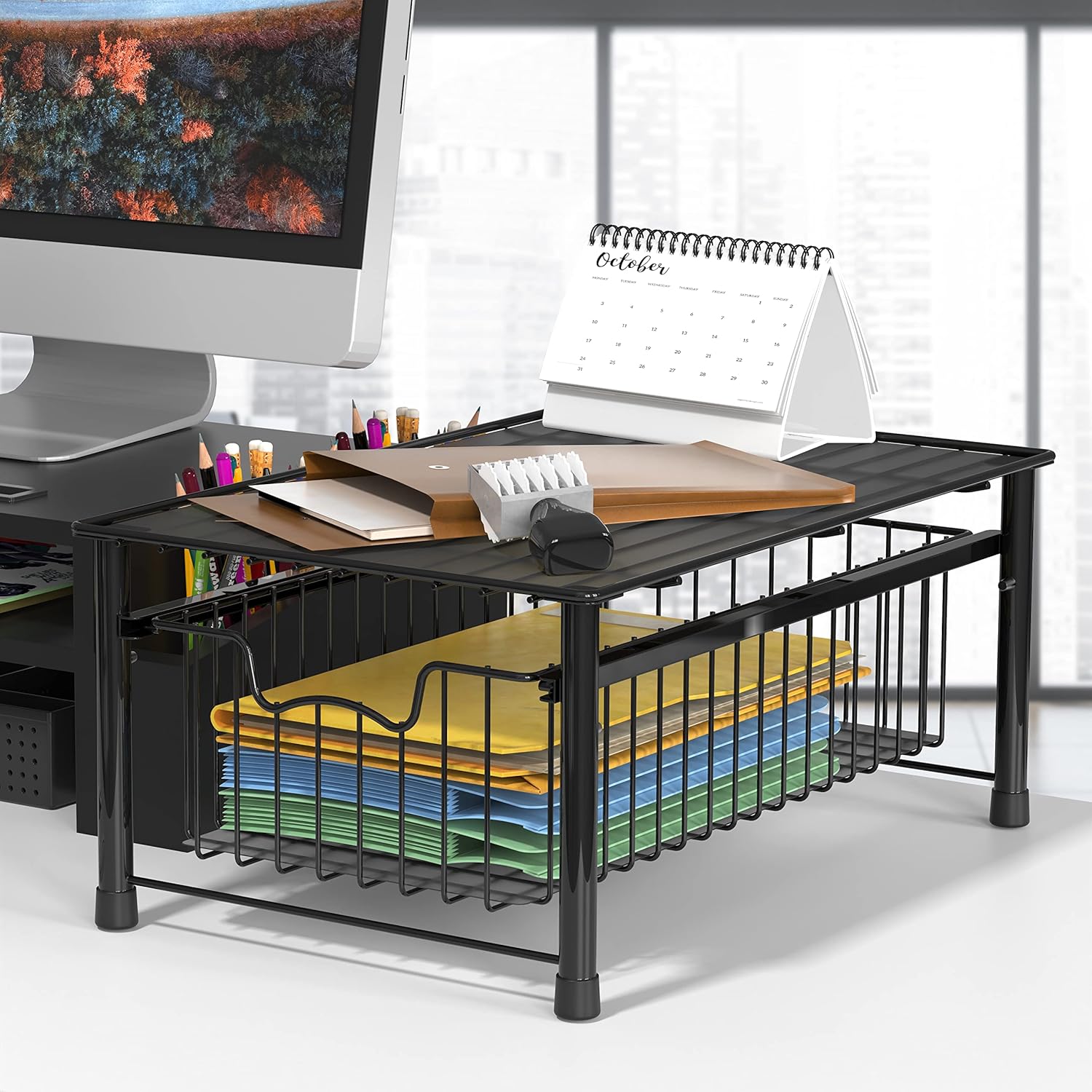 - Sliding basket for easy access in limit space and stackable design (Buy two sets and stack them together)
